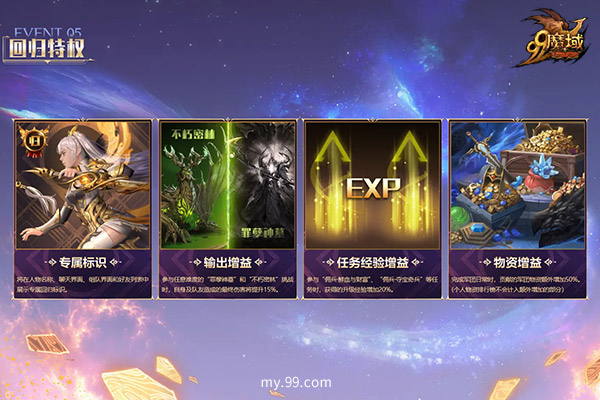 再踏亚特归途,重返荣耀巅峰!经典网游《魔域》上线全新回归系统,开启亚特回归之旅!还记得吗,树心城的经典音乐曾陪伴勇者冒险拼杀,双心湖的浪漫夜色曾衬托青春的单纯美好,军团家族的团战曾记录热血的友情岁月……本次全新回归系统将为魔友们献上海量回归礼,助力勇者再踏冒险征途,重温热血回忆! 海量回归礼专属特权免费领??助力勇者重返巅峰 想回归重返巅峰,此时不造更待何时?5月31日维护后等级达到135级、成神、开三宠且超过30日未登录的勇者,就可以获得参与为期28天的“回归之旅”系列活动。为了让“回归之旅”更加轻松顺畅,官方准备了海量免费特权大礼! 魔友们不仅可以免费领取专属外观、幻魂、跟宠、称号,在回归的第一时间从头到脚打扮得美美的;还能通过做任务得免费犒赏神火碎焰、星石,加强自身实力。还可以通过活跃度解锁小年兽、神火、圣器、新魔石养成好礼,更能让勇者快速跟上亚特战力的高阶水准。 ? 此外,“回归之旅”为回归勇者们在人物名称、聊天界面、组队界面和好友列表中展示专属回归标识。与任意难度的“罪孽神墓”和“不朽密林”挑战时,自身及队友造成的最终伤害将提升15%的输出增益。参与“佣兵·鲜血与财富"、“佣兵·夺宝奇兵”等任务时,获得的升级经验增加20%的任务经验增益。完成军团日常时,贡献的军团物资额外增加50%的物质增益。 勇者们在回归时完成回归签到,并完成回归任务之神火任务、圣器任务、幻兽任务等,不仅能领取奇幻星石礼袋、85级神火碎焰等奖励,还能获得回归经验,提升回归勇士等级,并领取相应的奖励。不仅如此,勇者们更可以以超低特惠获得高级神火、圣器特权礼包。有了这些礼包和特权的加持,老玩家们必将再登巅峰。 核心玩法手把手教学??老玩家回归一步到位 官方不仅为老玩家准备了海量回归豪礼,还推出了《魔域》全攻略教学栏目《卡诺萨学院》,在官网、抖音、快手、视频号等官方自媒体平台同步更新,对神火、圣器、神兽等新的养成系统做到了手把手玩法教学,不仅适合萌新玩家快速入手游戏,更让老玩家快速了解当前版本,达成回归一步到位。 热血从未凉,今日正重燃!《魔域》从未忘记每一个在亚特大陆拼搏过的勇士,这一次的回归大礼,相信值得勇士们重燃热血,再战一次! |