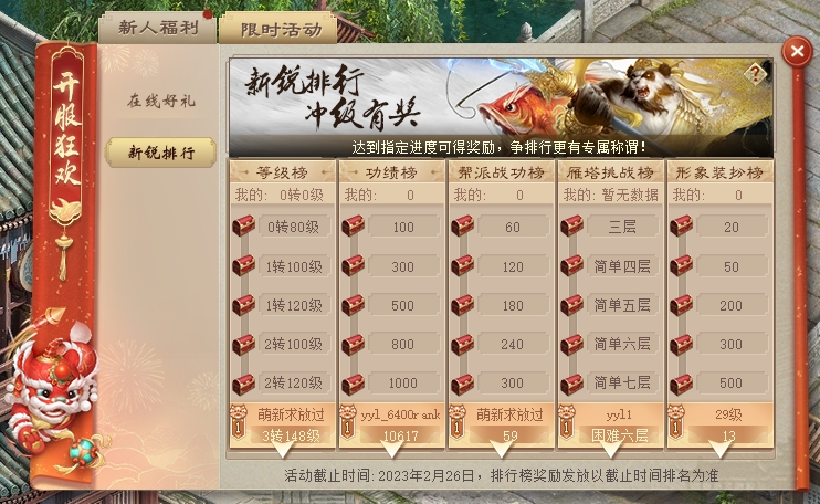 总是伴随着空气中的火燎气息,夏天宣告着他的主权,热浪压榨着空气的最后一丝精力,肆无忌惮的张狂着热情, 但有些东西悄然而至,就像起瓶盖时气泡炸开,溅到肌肤上的冰凉水珠,每当夜幕昏沉,走过灯火穿林打叶的光点,会有不期而遇的晚风,正等待着这个夏夜。 被包裹着的清爽,带着草木气息的透彻,吹拂着肉体和灵魂,今晚,一定是个好梦。 6月9日中午12:00,《大话西游2经典版》开启新服【清风入梦】。6月8日12:00起,侠士们便能够进入游戏,在新服中预约创建角色。 一. 结缘神兽,畅游江湖 ①新手成长 新服开启后的31天内,完成每天的任务可以领取单个任务奖励,有概率得:神兵、仙器、悔梦石、筋骨提气丸、神兵石、龙之骨、六魂之玉等奖励。 (图片仅供参考,实际以游戏为准) 注:完成每天的任务即可获得1点成长值,成长值可参与在线好礼抽奖(抽奖不消耗成长值)。 ②在线好礼 新服活动期间,人物大于30级,满足指定成长值并在抽奖当天19:30保持在线即可抽奖,奖励分保底奖、惊喜奖、豪华奖和终极大奖四大类,有几率获得鎏金宝鉴召唤兽、神兵、仙器、龙涎丸宝宝等奖励。 (图片仅供参考,实际以游戏为准) ③新锐排行 新服开启前24天开启“新锐排行”,分为等级、功绩、帮派战功、雁塔除妖、形象装扮五类,包含限定称谓、神兵、仙器、六魂之玉、神兵石、龙之骨、筋骨提气丸、终极修炼丹等奖励。 (图片仅供参考,实际以游戏为准) 满足等级≥30级、时间宠≥10级的玩家皆可参与,达到指定进度即可领取个人奖励,活动结算时根据排名发放排名奖励和前10名专属限时称谓。 ④名动三界 开服第5周凡达到2转120级的玩家,都有几率获得五常神兽、鎏金宝鉴召唤兽、龙涎丸召唤兽!此外,每有1000个玩家达到3转102级、500个玩家达到3转143级,还都会增加一只鎏金宝鉴召唤兽投放,让大家闯荡江湖能有更多助力! ? 二. 成长助力,闯荡无忧 ①预约礼包 在预约期间可登录并选择牛刀小试、纵横江湖和叱咤三界三个不同级别预约礼包,完成预约即可在开服后于游戏内领取多重奖励。牛刀小试预约,可享受二级排队特权。纵横江湖、叱咤三界预约,则将增加更高级的排队特权,助你上线快人一步,闯荡江湖畅行无忧!更有时装/特效抵扣券、海量大话币和师门贡献、灵兔绒等丰厚奖励等你来领! 除了常规购买渠道,6月8日12:00开启预约后,各位少侠更可以通过礼包页>>登录游戏账号,便捷购买特权礼包。 新服专属,超值壕礼 ①降妖录 前25周只需接取并完成不同的委托任务,即可获得每个任务所对应的“报酬”,报酬中包含海量经验奖励,以及神兽碎片、神兵、一阶仙器、圣兽要诀、高级藏宝图等众多道具。 四. 新服服务器等级上限功能 以下各等级所对应的天数: 开服天数 当天等级上限 0转89 2~3 1转89 4~5 1转109 6~7 1转121 8~10 2转109 11~13 2转119 14~17 2转129 18~22 2转141 23~27 3转109 28~32 3转129 33~37 3转143 38~44 3转159 45~52 3转169 不限制 说明:开服天数开服时间(中午12点)计算,如周五12点开服,到周六12点前,只能升级到0转89。 注:达到等级后即无法升级,此时经验存入道具聚灵珠。 二十年时光过去,大话初心不改,持续打磨产品细节,只为给兄弟们最优质的游戏体验。大话客户端现已全面升级,登录最新版的客户端,不单登录界面更加唯美,还将让大家操作更便捷、体验更顺畅。只因心中有你,不放过每一个细节! |