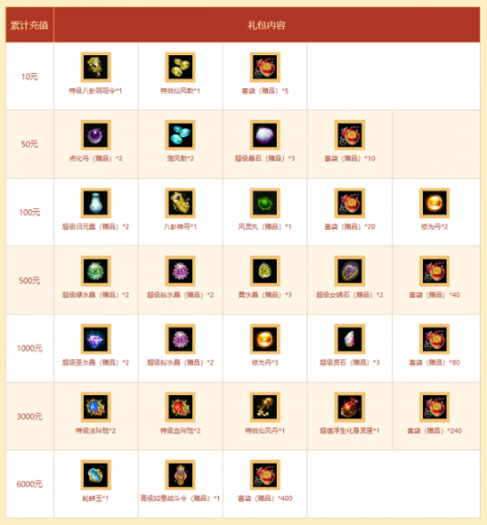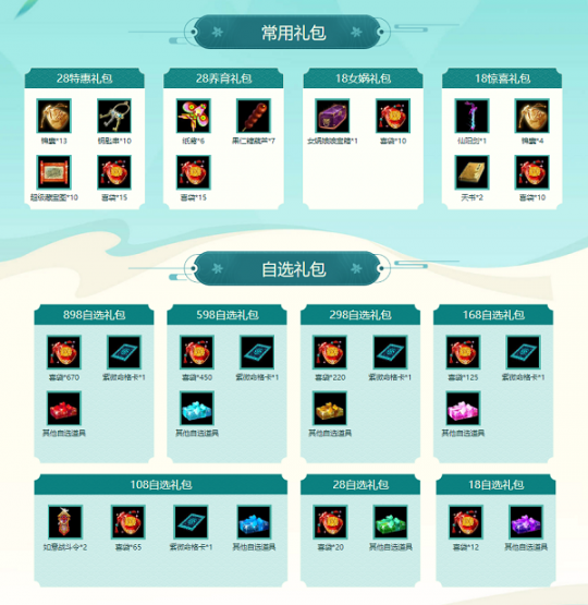 《问道》充值大返利活动限时开启,坐骑神兽大派送!即日起截止至6月25日,经典版、公测版超值大返利活动限时进行中,游戏内放送珍稀道具、高价值宠物、坐骑等奖励! 充值并兑换礼包每达到10元、50元、100元、500元、1000元、3000元、6000元,就能获得对应的累计充值礼包,轮转玉、特级法/血玲珑、超级圣水晶等珍贵道具应有尽有!各阶段的对应礼包内还包含数量不等的喜袋,经典版的喜袋有一定几率开出神兽、神兽精魄、变异精魄、80级随机所有相首饰等。公测版喜袋有一定几率开出元灵、神兽、变异、神兽精魄、变异精魄等大奖! 领取完礼包后,充值兑换达到50元及以上,领取完累计充值礼包还可以额外获得一个抽奖资格码,领取累计礼包时间截止至6月26日23:59。6月27日00:00,6个阶段都会随机在各自资格码中抽取幸运玩家发放丰厚奖励。经典版的玩家有机会抽中神兽、变异、神兽精魄、八阶坐骑太极熊或光焰北斗、六阶坐骑等奖励,公测版的玩家有机会获得随机九阶坐骑、八阶坐骑光焰北斗、元灵、神兽、变异、变异精魄、神兽精魄、元灵精魄等奖励! 公测版的自选礼包活动同步进行中,即日起截至6月25日,道友可自行选择道具搭配购买,各个价位的常用礼包、自选礼包等供道友选择,礼包内包含不同数量的喜袋,喜袋有一定几率开出随机元灵(赤天、混沌、笛舞、降魔、夫诸、震魃)、神兽、变异、神兽精魄、变异精魄、满属性装备箱、80级随机所有相首饰、道具套餐卡等,喜袋具有耐久度属性,每使用一次耐久度-1。开启喜袋获得3000次道行数值奖励后,再次开启喜袋获得道行奖励,将不再增加角色本月道行而只增加真身道行。 自选礼包活动开启期间,在全区组商城中可购买常用礼包,游戏内右上角小图标处点击“自选礼包”进入页面可进行购买自选礼包。使用金元宝选择自选礼包商城里的物品,按照物品分类计算价格,当价格达到1800元宝、2800元宝、10800元宝等,打包后还可以获得相应的赠品。右键包裹中的礼包,可以查看购买的物品,进行使用。 充值返利活动限时回馈中,道友别错过! |