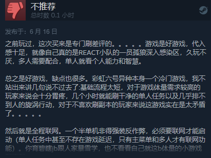 《彩虹六号 异种》Steam发售 综合评价“多半好评”