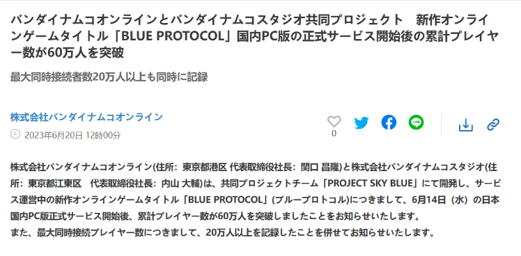 开服就炸服 二次元MMO游戏《蓝色协议》 创造万代历史纪录