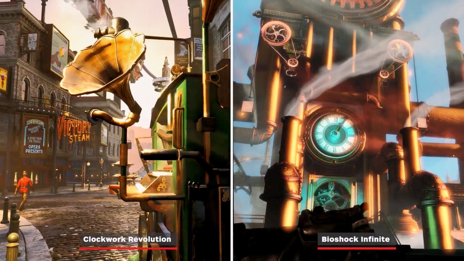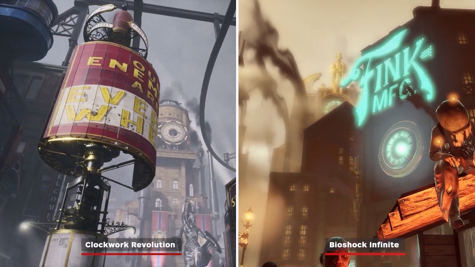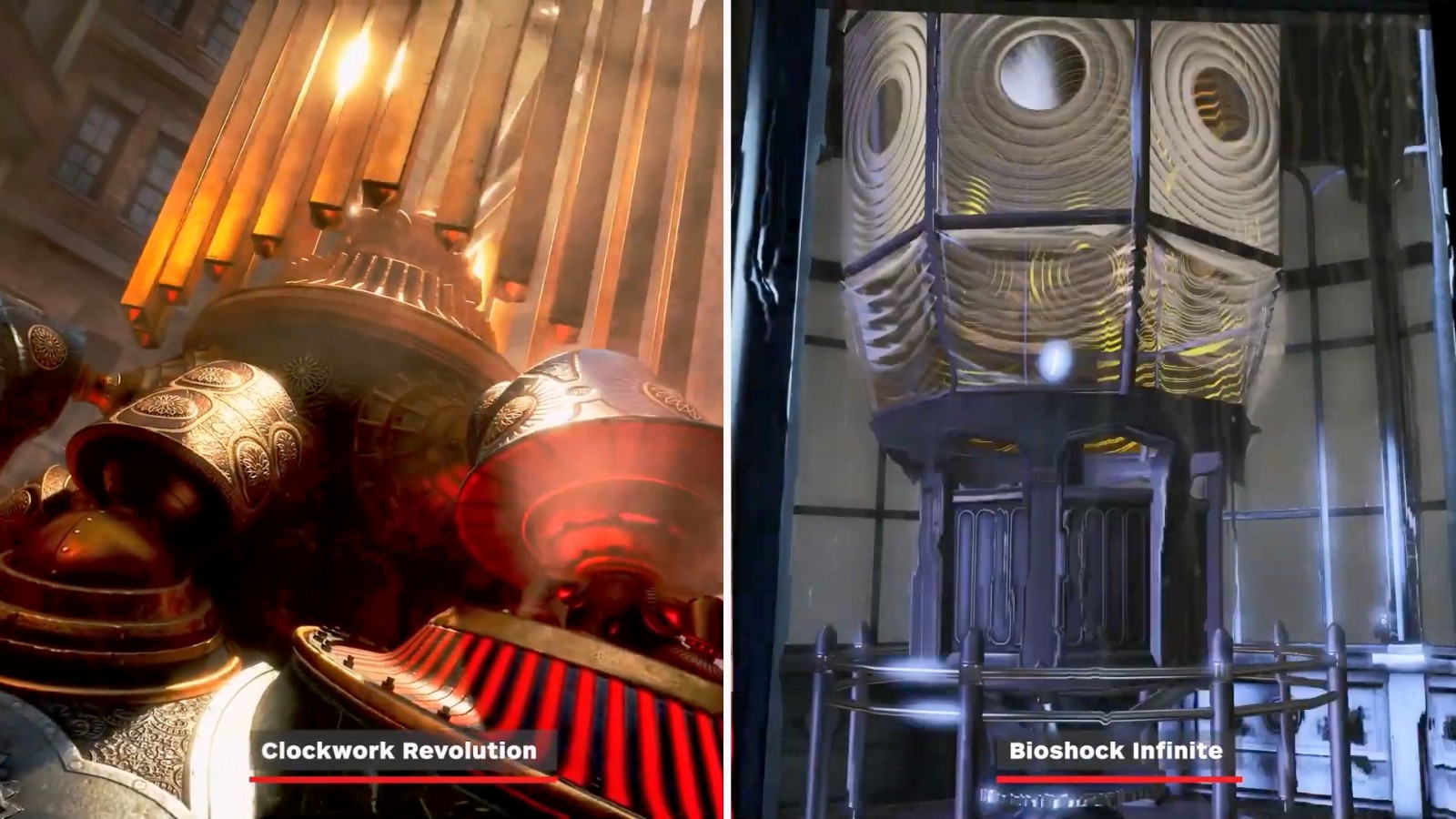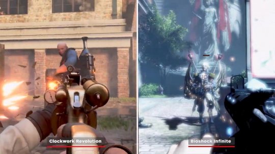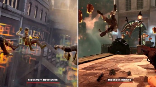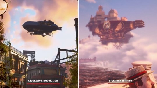 考虑到很多人认为《发条革命》很像《生化奇兵:无限》,IGN特此做了一个对比视频,展示了二者的相似之处。