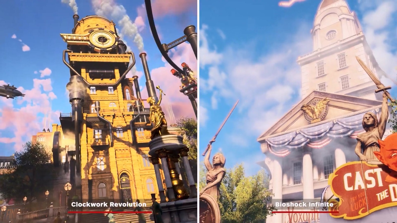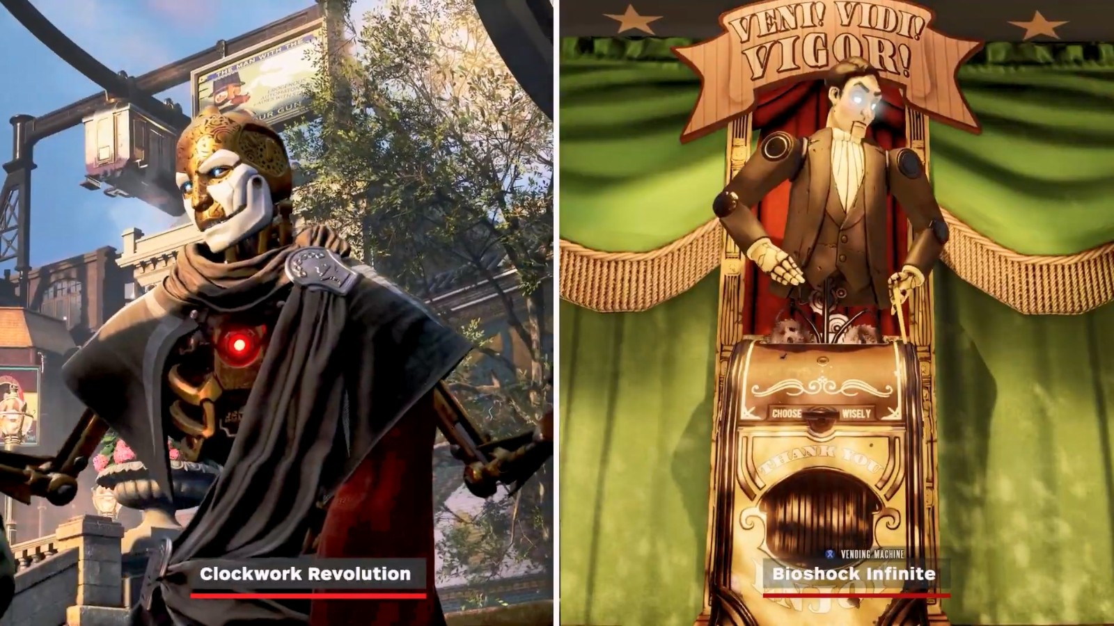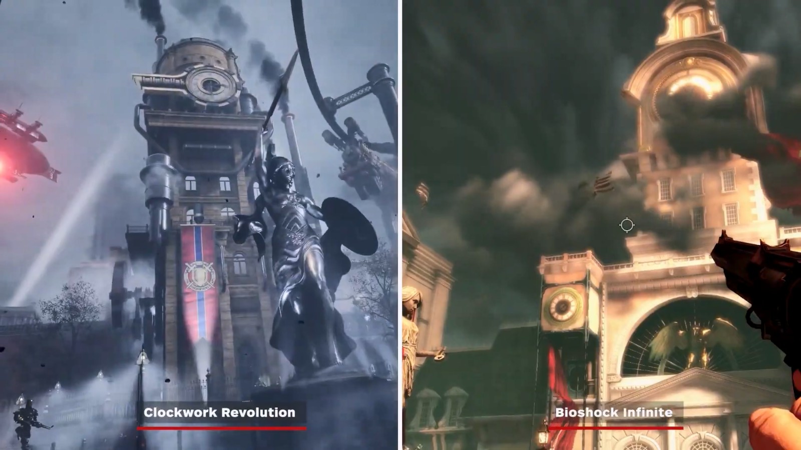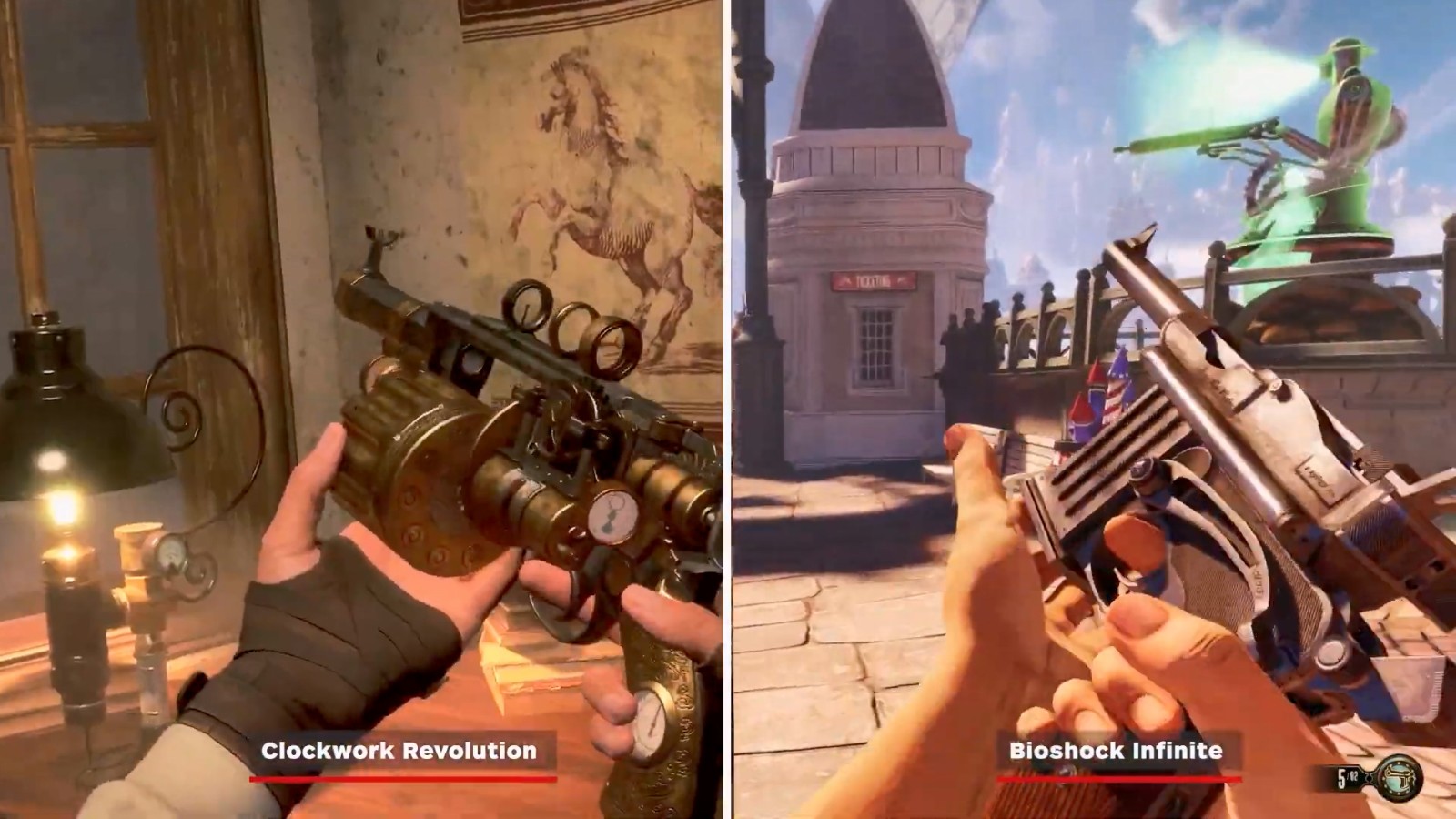 考虑到很多人认为《发条革命》很像《生化奇兵:无限》,IGN特此做了一个对比视频,展示了二者的相似之处。