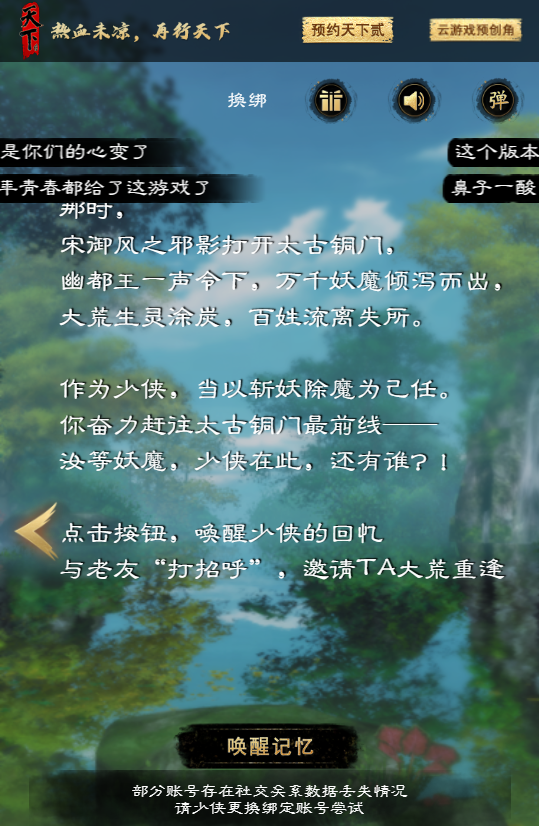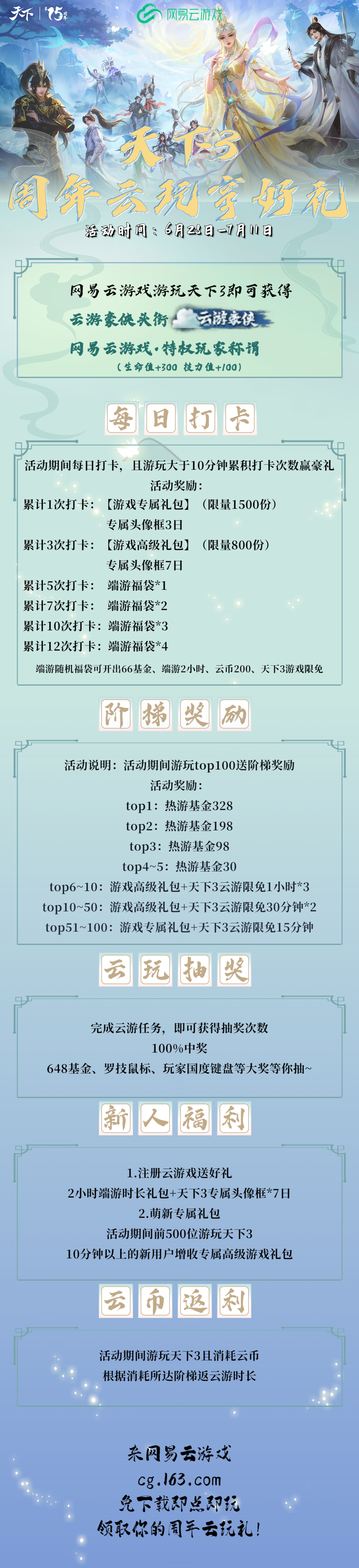 《天下贰》大区开服在即,想必不少少侠早已按捺不住前往大荒重温旧梦的心了,为此KFZ也特意提前开放了预创角及地图体验活动,让大家可以提前做好重游故地的准备!《天下贰》大区的新服预创角具体指引见此:《天下贰》大区新服预创角活动明日10点开启,参与抽奖赢万元好礼! 同时,为了方便各位少侠快速进行预创角操作,本次还开放了云端预创角活动,无须下载客户端,欢迎少侠前往活动页面创建角色。 当然,少侠们莫忘邀请好友,重聚大荒! 领略大荒山水,重温梦中景致 《水墨》响起,一起开启新的大荒之旅!预创角活动正式开启,血战、兵临城下、莫问今朝、纵横四海为首批开放的大区服务器。 各服务器官方社群已建立,欢迎各位少侠入群,与新朋旧友畅聊大荒! 角色创建完毕后,少侠们还可以提前进入大荒游览经典地图! 曾经以为只能存在于梦中的风景,如今尽数回归。又怎能不第一时间前去一探呢? 走在气势磅礴的龙首坝中,感受着巨坝带来的心灵震撼;路过永宁镇,欣赏古朴大气的土楼,领略独特的建筑艺术;漫步木渎镇,感受“烟柳画桥,风帘翠幕”的诗意江南;前往流云渡,回想热血切磋的激情岁月…… 每一处都承载着大家最珍贵的记忆,少侠们不妨拍下这些熟悉的风景,分享给曾经的好友,与他们一同共话当年! 老友召回H5温情上线,呼朋唤友重逢大荒 还记得你在大荒中遇到的那些人吗?ta也许是悉心教导你从萌新成长为大侠的师父,也许是和你形影不离、无话不聊的挚友,也许是与你并肩战敌对、退妖魔的势力伙伴…… 时过境迁,一同留下的记忆还未褪色,故人却在茫茫人海中走散。曾经与你共度大荒时光的友人,你是否也时常会想起他们的名字,想对他们说一声“我好想你”? 预创角活动正如火如荼地进行中,你是不是也期待着,能和他们一起重回大荒,再战天下呢? 水墨晕开,一处处如画景致、一个个熟悉的Boss重现眼前,与老友们在这些地图上共度的时光、在Boss面前不屈不挠的挑战经历也愈发清晰。 少侠们可以点击动画最后的“唤醒记忆”,绑定角色后,即可查看当前角色的好友列表,少侠们可以通过列表中的“打个招呼试试”,向对应的好友发送一条邀约短信,期望能与他们大荒相逢! 除了发送短信邀约,少侠也可以制作一张天下贰追忆明信片,分享给自己的老友们,邀请他们一起参与活动,与你共同翻开这段尘封的记忆,细数当年。 在该页面还可以添加“玄小素”官方企微为好友,参与包括价值3万元的云南·香格里拉豪华家庭游、万元高端主机、千元再战天下现金红包在内的豪礼抽奖! 前往参加老友召回活动,为过去友人送上你的思念吧! 天下3×网易云游戏专属打卡活动开启 十五同载,天下同归。除了方便大家在《天下贰》大区创建角色的云端预创角活动,天下3×网易云游戏还为广大带来了更多周年福利。 6月28日-7月11日期间,少侠们参与打卡活动,即得专属头衔、专属称谓,累计打卡达到不同次数,还可以领取专属礼包、高级礼包、专属头像框、端游福袋等好礼!福袋随机掉落66基金、端游时长、限免福利! 欲知更多活动详情,可下滑查看长图: 预创角活动开启,等待各位少侠前来创建角色,提前重温梦中难忘的景致。更欢迎各位少侠通过老友召回H5,翻阅过往的珍贵记忆,邀八方好友重聚大荒! 热血未凉,故人当归,期待7月5日《天下贰》大区开服当天与各位少侠一同,再战天下! |