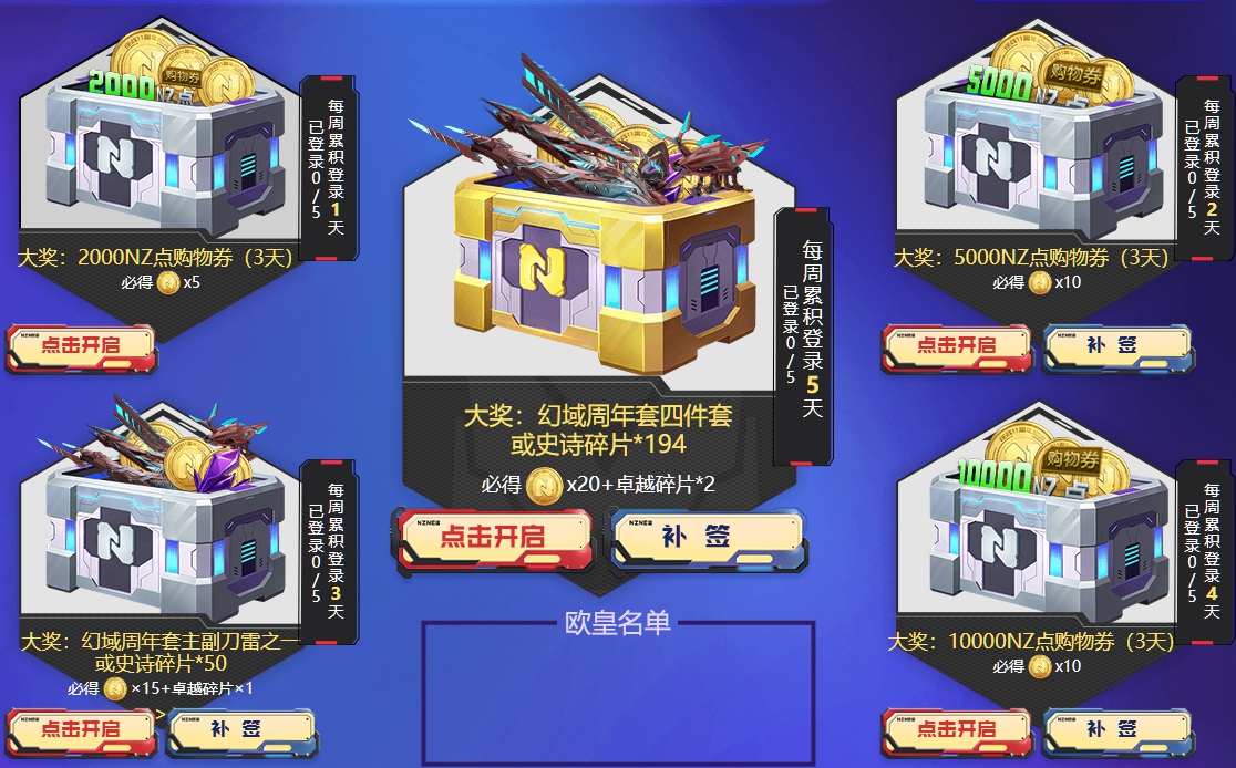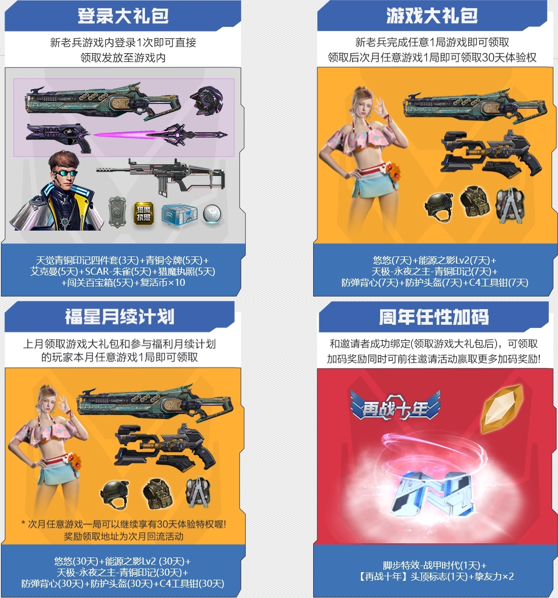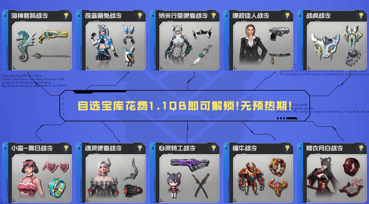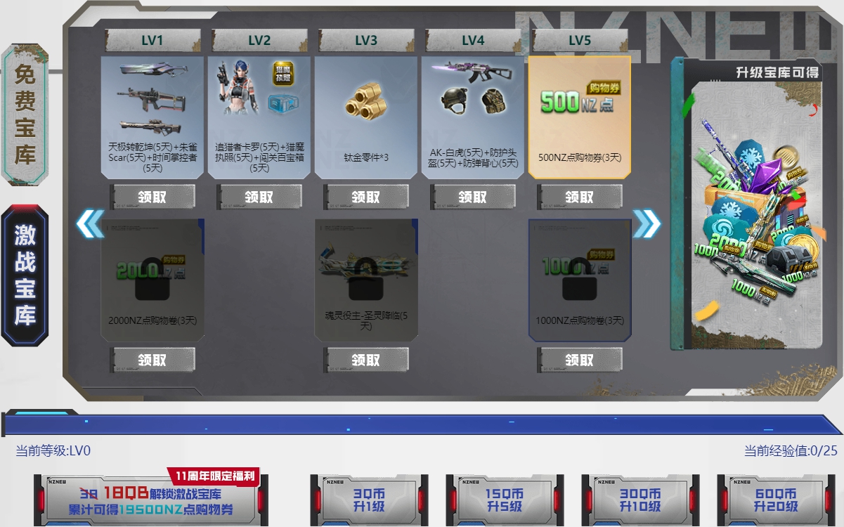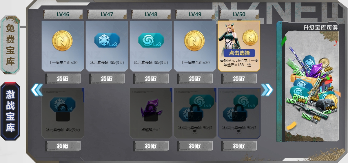 7月6日,逆战周年庆版本即将上线,11周年庆预热福利活动已提前开启,重磅内容包括:11周年最强福利商城开启,全民免费领战甲、神器零元购,还有全新套装拍卖行上线!十万Q币放送,领取青铜飞升,机械进化的11周年最强免费套装;全年最强回归福利,为你全维度配齐畅爽体验;全新青铜令牌登场,值得呼朋唤友一起来领取;还有逆战手机云游戏,暑期限时免费玩,限时畅享超清画质! 更多关于逆战11周年庆的详细内容,快来抢先了解参与吧! 战甲时代正来到,全新战甲登录免费领! 7月6日起,全民首套战甲“凌空”免费解锁,各位玩家可以在11周年活动期间登录游戏, 解锁战甲系统内的更多福利!通过战甲“凌空”,各位玩家可以施展二段跳、空中悬浮、震地冲击等技能,在闯关过程中,收获众多意想不到的全新体验。 全新神器零元购,云游戏暑期限时免费玩!在11周年庆期间,全新神器“灭烬之嗣”也能0元购,各位玩家只要满足累计登录天数,就可以将这把可以召唤地狱三头犬的神器免费收入囊中! 如果你想提前购入体验,也只需要通过满足登录天数,让神器价格不断降低,直至全额返还逆战点,实现零元购! 11周年庆典期间,还有暑期限时免费玩、限时享超清画质的逆战云游戏特权福利,全新网吧特权暑期升级内容,更有丰富的线上赛事、直播庆典及海量福利等你关注……逆战官网最新动态将持续更新,惊喜不容错过! 11周年最强福利商城开启! 活动时间:7月6日起 7月6日,11周年最强福利商城将开启,各位玩家每日登录游戏,即可开启11周年宝箱。 宝箱每周最多开启5次,每周一0点自动重置宝箱,每次保底必得11周年金币,最高可获得幻域周年套四件套或194史诗碎片,当日游戏30分钟,可获得1次补签机会,每周最多补签2次。 在活动期间,各位新老兵玩家,只要每日游戏60分钟,还可以领取11周年庆岁礼包,分别获得弥新、灵智铭钢、古迹遗剑、11周年金币、荣耀银币等奖励,还能以超低折扣购买最终之剑。 累计游戏5天,可以0元领取价值188元的2号背包组解锁卡或5000NZ点购物券(3天);7月15日后,累计游戏天数,还可以领取战甲风限定道具干将莫邪-纪元之光。 11周年拍卖行也将同期上线,在活动页面上,每日12点、19点会分别开启两场拍卖活动,拍卖持续2小时,各位玩家可以使用11周年金币出价,拍卖结束后将公布竞拍结果,竞拍成功后访问页面即可获取竞拍道具,次日0点将重置今日购买资格。 每周拍卖道具都将更新,快来看看你喜欢的道具是否在其中吧! 暑期战甲免费养成也将限时开启,各位玩家可以使用荣耀银币养成战甲! 各位玩家累计获得100-500时,分别可领取刚能强魄、凌空战魂*1、疾速武装、聚能核心、凌空战魂*4等战甲养成道具,千万别错过。 11周年最强福利套装也可以参与活动领取。各位玩家可通过消耗11周年金币,在周年金币兑换商城、周年猎场期限战备商城、周年塔防&PVP期限战备商城中兑换道具。 猎场、塔防、PVP战备商城每日游戏一局,即可领取道具,每个道具每日限1次,每月限3次。 青铜飞升,机械进化 活动时间:6月30日起 十万Q币,为你而来 从6月30日起,各位玩家仅需要每日完成游戏30分钟,即可获得卡片抽取机会×1,每日最多可获得3次。 通过抽取卡片,各位玩家可以收集到:溯光之戒-卡片、机械鲲-卡片、苍蓝视界头盔-卡片、图兰-卡片、影锻手环-卡片,以及万能卡、沾沾卡。 其中万能卡可以兑换任意一张卡片,而沾沾卡可以随机沾到朋友的一张卡片,卡片可以相互赠送。 集齐5张卡牌后,各位玩家就可以合成宝箱,参与瓜分奖励,不过你的游戏内等级必须达到40级以上才可以参与,越早集齐,瓜分的奖励越丰厚。 前30000名合成周年宝箱的玩家,可以获得Q币宝箱+NZ点宝箱+NZ点购物券宝箱的奖励;30001-111111名合成周年宝箱的玩家,必得NZ点宝箱+NZ点购物券宝箱; 111111名之后合成周年宝箱的玩家,必得NZ点购物券宝箱。 11周年限定套装,机械飞升全民享 6月30日-8月14日,各位玩家可以通过活动内的战令宝库,获取智械套装角色的前置角色:青铜纪元-琉萤。完整获得青铜纪元套装后,可通过后续的任务获取机械鲲,将青铜纪元套装升级为11周年庆典最强免费套装的最终形态:智械帝国套装。 智械帝国套装包括:智械帝国-机械鲲、智械帝国-图兰、智械帝国-溯光之戒、智械帝国-挑战者背包、智械帝国-影锻手环、智械帝国-苍蓝视界头盔。 当玩家装配6件时:按T+6释放神武宝库时,额外随机获得一种帝国至高增益,效果不重复触发,所有增益触发一遍后进入第二轮循环。 易伤:每秒减少10点血量,攻击力提升,持续10秒; 神速:射速获得强化提升,持续10秒; 狂暴:暴击率获得强化提升,持续10秒; 疾行:移动速度获得强化提升,持续5秒; 吸血:攻击可以回血,持续10秒,最多可回恢复100血量; 大富翁:猎场击杀小怪获得额外金币,单次最高可得5万金币,猎场每局最可得15万金币;塔防击杀小怪获得额外金币,单次最高可得500金币,塔防每局最可得2000金币; 护佑:场上所有玩家回复100点血量; 天赐:同时激活易伤、神速、狂暴、疾行、吸血、大富翁、护佑效果。 战令宝库分两个阶段开放,6月30日-7月6日 14:00为预热期,开放1-10级; 7月6日14:00-8月14日为冲刺阶段,开放11~50级,每级经验值均为25; 钛金零件和强能核心可前往赛季提升武器强化等级; 十一周年金币可于十一周年商店兑换终极好礼。 战令宝库升级至50级时,即可领取青铜纪元-琉茧或十