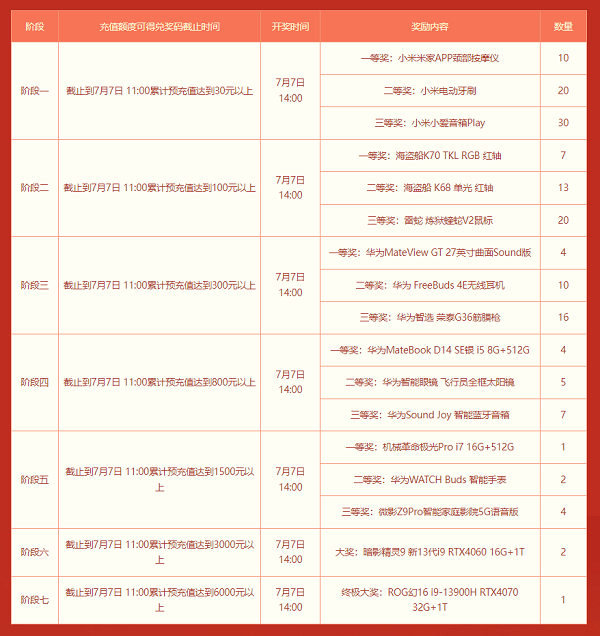 《问道》双线联运版暑期大服“夏日星河”定档7号,新服专属人气活动“幸福三重奏”进行中,参与预充值就有机会获得超值奖励,笔记本电脑、投影仪、显示器、智能手表、耳机、鼠标、键盘、智能眼镜等多种多样的数码产品,还有元灵、神兽、坐骑等游戏内大奖!开服当天即7月7号14:00统一开奖,道友别错过! 新服专属人气活动“幸福三重奏”进行中,预充值活动、仙道集结、累计充值抽奖三大活动再度开启,多款笔记本电脑、投影仪、显示器、智能手表等数码奖品,更有游戏内的新服限定八阶御灵光焰北斗、随机九阶/八阶/六阶坐骑、随机元灵/神兽/变异等丰厚奖励送不停! “预充值活动”活动时间截止至7月7日11:00,活动期间在“夏日星河”服务器预充值即可参与活动,累计充值额达到相应的额度即可获得一个抽奖资格码来参与抽奖活动。累积预充值额度越高可参与抽奖的次数也就越多,奖池内的奖励也就越丰厚。预充值分为30/100/300/800/1500/3000/6000元7个阶段,每个阶段对应有不同的数码豪礼。预充值达到30元就有机会获得小米颈部按摩仪、小米电动牙刷、小米小爱音箱,最高可获得终极大奖:笔记本ROG幻16。更有海盗船键盘、雷蛇鼠标、无线耳机、投影仪、智能手表等丰厚的数码奖品,奖品数量多达156件,7月7日开服当天14:00统一开奖!最后两天,新服特色活动别错过! “仙道集结”活动时间截止至8月6日,玩家在新服角色抢注期间注册角色和进行预充值都可以获得仙道值,在开服后根据累积的仙道值可以激活不同档次的预约集结礼包。开服后人物升级至指定等级,可获得化身碎片、紫气鸿蒙、如意战斗令 、凤仙花等奖励。额外参与预充值更有机会获得新服限定八阶御灵光焰北斗、特级聚灵石、改五武器/防具改造令、羽化丹等丰厚奖励!所有礼包可以在开服后进行领取。 “累计充值抽奖”活动时间截止至7月23日,活动期间,玩家充值兑换每达到10/50/100/500/1000/3000/6000元七个阶段,即可获得对应的累计充值礼包。充值兑换每达到50/100/500/1000/3000/6000元六个阶段,还可以额外获得一个刮豪礼资格(注:必须是领取完礼包后才能获得刮豪礼资格)。同一帐号每阶段只能刮一次豪礼,即最多能刮六次,刮豪礼有几率获得随机元灵、限定八阶坐骑光焰北斗、随机九阶坐骑、随机神兽等超级大奖。(若刮豪礼没有抽中大奖还可获得随机道具奖励,包含八卦神符、五雷令等。)累计礼包活动时间截至7月23日,刮豪礼时间为7月24日-9月3日。 最后两天,预充值活动即将开奖,还没参加活动的道友抓紧时间!双线联运暑期大服“夏日星河”抢注角色现已开启,相约7月7号不见不散! |