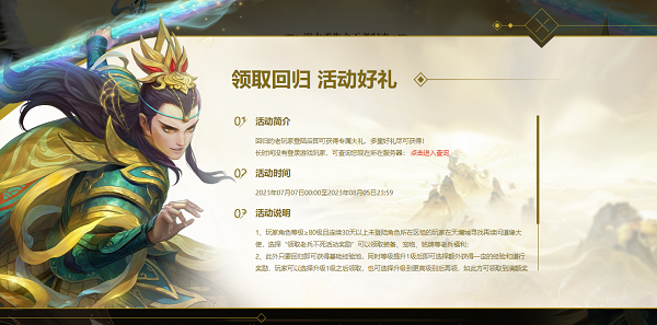 《问道》双线联运版暑期大服“夏日星河”开启,多重新服专属福利活动正在进行中!现“老兵回归”活动同步进行中,丰厚的回归奖励和专属特权等道友前来领取,期待道友重返中洲大陆,续写王者辉煌! “老兵回归”活动时间截止至8月5日,回归的老玩家登陆后即可获得专属大礼,海量经验、特权豪礼等福利尽可获得!角色等级≥80级且连续30天以上未登陆角色所在区组的玩家,在天墉城寻找“再续问道缘大使”可以领取装备、宠物、铭牌等老兵福利。此外只要回归即可获得基础经验池,同时等级提升1级后即可选择额外获得一定的经验和道行奖励,玩家可以选择升级1级之后领取,也可选择升级到更高级别后再领,如此方可领取到满额奖励。(回归玩家若等级低于100级,则不可获得:装备、宠物)。 王者礼包限时领取,等级≥80级且连续30天以上未登陆角色所在区组,可以前往原区组“问道缘大使”处领取激活码,在新服“夏日星河”的“问道缘大使”处使用此激活码进行兑换。王者归来礼包内包含丰厚豪礼,金色称号:长生久视、道心永驻,人物铭牌,随机时装等限时领取,更有天空石、天星石、炼魂丹等道具奖励,人物等级到80、90、100、110、120、130均有对应奖品可拿! 更有新服专属浴火重生抽奖,领取了浴火重生之王者归来礼包,且在新服“夏日星河”的角色等级≥80级后可以前往官网活动页面进行抽奖,有机会获得官方定制Cherry机械键盘、勾陈/笛舞手办、跳跳兔抱枕、官方定制版晴雨伞、游戏内铜钱铭牌等奖励。 参与“老兵回归”活动,让我们再度相聚中洲,再创传奇!双线联运版暑期大服“夏日星河”超多福利活动进行中,新服累计充值抽奖、年费会员抽奖、特惠礼包等福利回馈送不停,更多精彩等待道友的发现! |