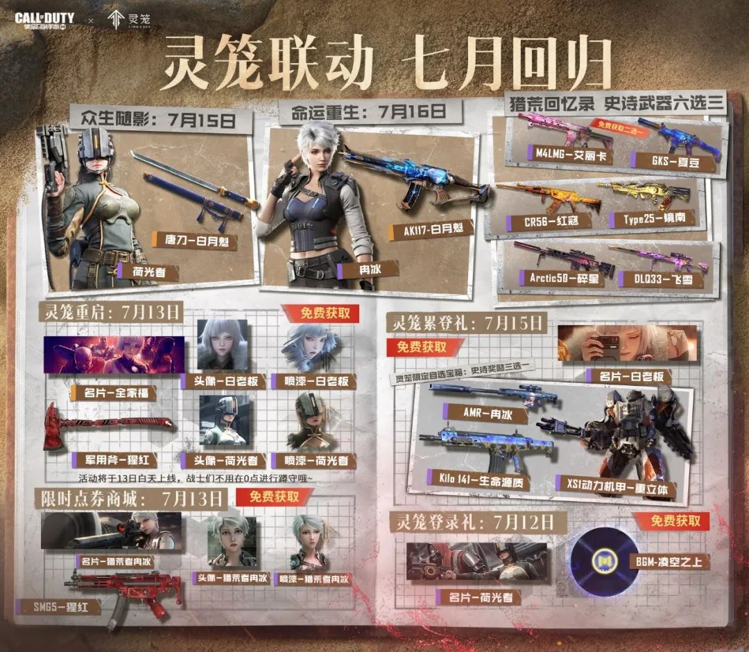 福利合集 灵笼联动,七月回归,限时点券获取日历更新!