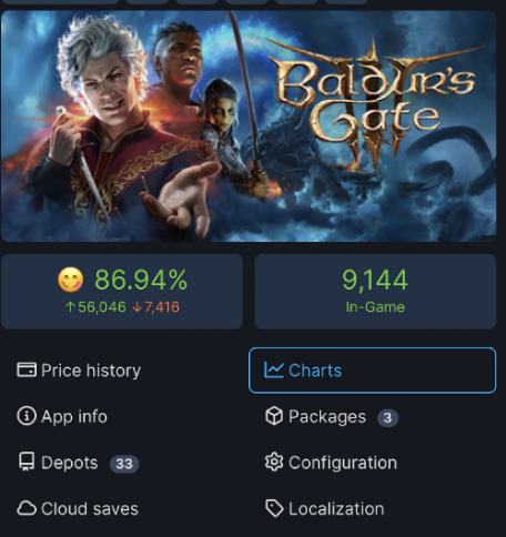 Steam周销榜公布 博德之门3宣发效果拔群 像素战地热度不减