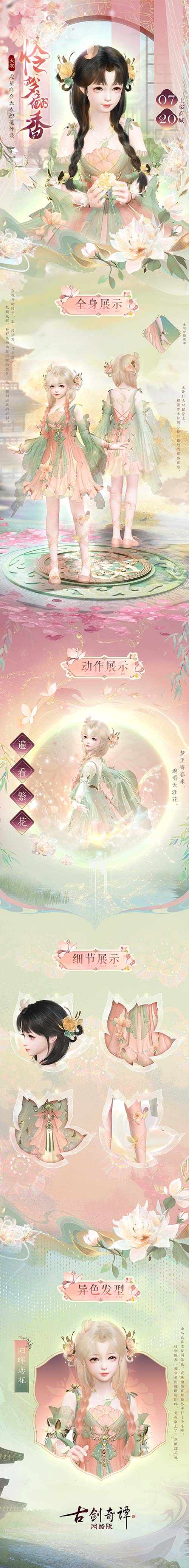 歧路相逢,共烛天明。《古剑奇谭网络版》凿空浑沦版本暑期资料片“共烛天明”现已上线!故人重遇,疑窦丛生,主线剧情持续推进!虚域·陈州新区域开放!全新秘境陆续登场,更多意料之外的首领等你挑战!斗法新赛季即将开启,全新战场开放!全新列传开启,远方传来的是“TA”的行踪?大羿君弓指玉加入集仙谱,助力仙家弟子修行前路!诸多系统优化上线,海量全新奖励等你获取! 全新外装【天衣·怜梦翩香】今日上架通宝商城,账号下同体型共享。 梦里寄春来,遍看天涯花,外装附赠专属外装动作【遍看繁花】,使用即可唤来遍地繁花。 更有同款异色发型【天衣·阳晖恋花】同步限时上架。 金乌也眷恋花间景色,夜晚悄悄在繁花丛中打了个小盹。待到醒来,那华美而耀眼的阳晖,竟也染上了一点嫩红花色。异色发型【天衣·阳晖恋花】限时上架时间为2023年7月20日6时~7月27日6时,上架期间可享限时折扣。 在花开的时节,取一段清芳、几点露水、数截花影,和好几场倚花而眠的美梦,精心裁制而成的衣衫。无论什么时候穿上,都能带来如同万枝云霞般的繁盛花意。 更多内容,欢迎仙家弟子们前往《古剑奇谭网络版》官网、官方微信公众号、官方微博、官方B站账号持续关注! |