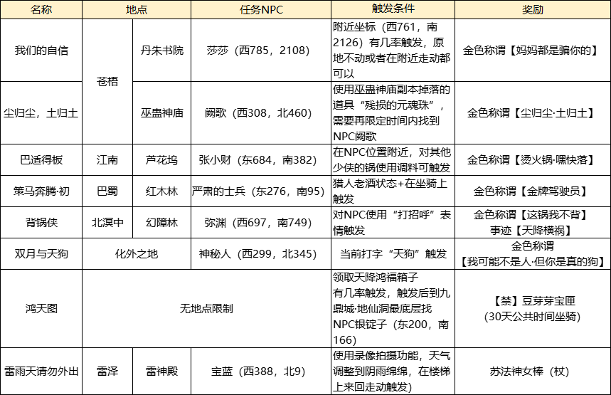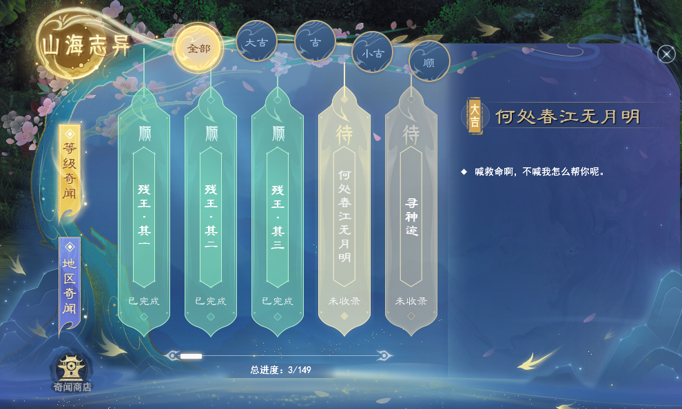 山海奇闻传,神秘趣味添。在《天下3》里面,少侠行走大荒时,偶尔会触发一些趣味任务,犹如山间不经意发现的彩虹,让人倍感奇妙,而这些旅途中的小惊喜,皆来自《天下3》的奇遇玩法。在《天下3》中,少侠可通过山海志异系统,查看与搜集众多奇闻任务。本周大荒新增了50条奇闻任务,与此同时还有相对应的“奇闻商店”同步开放,方便少侠们完成奇闻之余,还能免费兑换全新坐骑、门派称谓、专属表情等各色新奇道具! 事不宜迟,下面一起来看看更详尽的奇闻更新攻略吧~ 山海志异,天下奇闻尽收囊中 山海志异系统已经上线许久,若还不清楚如何打开的少侠,可以使用如下两种方法打开哦~ 其一,是在页面中右上角小地图的左侧找到任务图标打开任务界面;其二,则是直接按快捷键“L”唤起。 打开任务界面后,可以在最下方找到“山海志异”的图标,点击图标,即可进入系统。 在该系统中,少侠们可以按照等级(大吉、吉、小吉、顺)或者按照地区查看奇闻。 本周更新后,少侠们还未触发的奇闻也被收录其中,根据其中的文字提示,或许少侠们能更容易寻得蛛丝马迹,顺利触发~ 此外,该页面中还置入了奇闻商店的入口。打开商店后,可以使用“奇闻之趣”换取各类道具,“奇闻之趣”可以通过完成奇闻获取。 众多奖励琳琅满目,奇闻商店精彩纷呈 通过上文的介绍,少侠可知完成奇闻后还可获取“奇闻之趣”,可前往奇闻商店兑换新奇道具。 那么,奇闻商店内都有哪些奖励可以兑换呢? 商店内道具琳琅满目,不仅有全新坐骑【桃枝点香】、全新饰件【山果挂枝】,更有极具各门派特色的称谓和呆萌的表情包~ 全新道具,新奇上线~ 全新公共时间坐骑【桃枝点香】 少侠轻轻抬手,【桃枝点香】翩然而至,行进时、禁飞区互动时均有桃粉的小心心洒落,可谓极尽梦幻~少侠只需消耗?60 奇闻之趣便可兑换该坐骑哦~ 全新腰部饰件【山果挂枝】 橙黄的山果挂在腰间,举手投足间,似乎都染上了清甜的味道。少侠兑换此饰件需要消耗?20 奇闻之趣。 全新门派称谓 十一大门派的称谓各具特色。紫色称谓有效期为15天,不可续费。金色称谓有效期为60天,还能使用16个称谓升级金券续费为永久哦~值得注意的是,不同时效的称谓,需消耗的奇闻之趣也有所不同,兑换紫色称谓需要消耗1奇闻之趣,而兑换金色称谓则需要消耗10奇闻之趣。 以下为荒火与天机门派的特色称谓,其余门派称谓,少侠可自行进入游戏探索哟~ 全新“萌动大荒”系列专属表情 “萌动大荒”系列专属表情上新啦!每个只需1奇闻之趣,即可永久解锁!让这些可爱的表情,为你的日常交际增光添彩吧~感兴趣的少侠需要消耗?1 奇闻之趣进行兑换哦~ 此外,这套表情包已经上线微信啦,心动的少侠赶紧扫码添加,用起来吧! 经典道具,玩转趣味大荒 除了这些全新的道具,还有一些“老朋友”,也可以通过奇闻商店换取哦~ 奇闻称谓 一些经典的奇闻称谓也会在商店内上架,少侠可登录游戏,前往商店查看或兑换更多称谓哦~ 其他奖励 此外,还有称谓升级金券、觉醒经验丹、灵木可供大家兑换。 称谓升级金券每个需要消耗2奇闻之趣,个人限购50个,觉醒经验丹和灵木每个仅需1奇闻之趣,且不限兑换数量。 值得一提的是,豆芽芽坐骑、奇闻称谓以及上图中的苏法神女棒,均可通过此前已推出的奇闻直接获得,为了便于大家获取,【昭言】少侠还整理和分享了相关攻略,下面一起看看吧~ 自山海志异系统上新后,听闻有不少少侠已经率先踏上了寻找奇闻的旅途,而且收获颇丰!看到这里的少侠,不妨也和身边的伙伴多多交流一下,一起去探索更多大荒的不可思议吧~ |