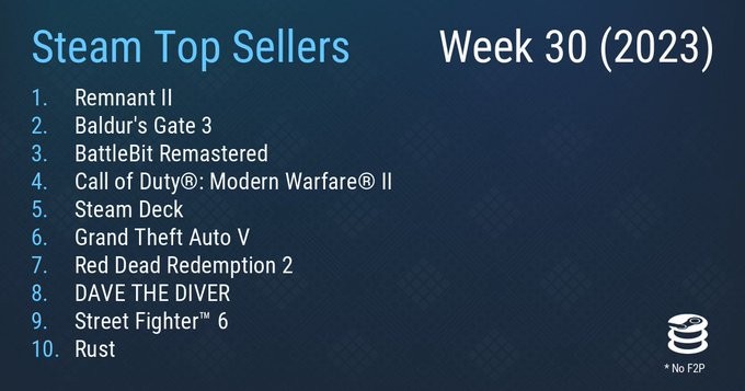 Steam周销榜一直以来都是玩家们了解近期热门游戏的重要参考对象,在V社今日公布的数据中,就列出了7月17日——7月24日期间,全球范围内卖得最好的10款作品的名单。其中,绝大部分都是老游戏,但有一款新作却意外登上了榜首。 新一周Steam周销榜TOP 10: 1.《遗迹2》 第三人称射击游戏 2.《博德之门3》 RPG游戏 3.《BattleBit Remastered》 第一人称射击游戏 4.《使命召唤:现代战争II 》 第一人称射击游戏 5.Steam Deck Steam掌机 6.《侠盗猎车手5》开放世界游戏 7.《荒野大镖客2》 开放世界游戏 8.《潜水员戴夫》 RPG游戏 9.《街头霸王6》 像素风探险游戏 10.《腐蚀》 开放世界生存游戏 居于榜首的《遗迹2》,是发布于2019年的第三人称射击游戏《遗迹:灰烬重生》的续作。尽管游戏题材是玩家们比较常见的末世背景,但刷宝闯关玩法、丰富的敌人种类、具有挑战性的游戏难度以及RPG要素的融入,还是让它脱颖而出广受好评。 《遗迹2》在今日才正式上线,但凭借前作积攒的好口碑,玩家们的预购帮助它登顶了Steam周销榜。当下这款游戏的口碑仍在不断飙升,相信在下期的榜单上,依然会有它的一席之地。 《博德之门3》 依靠IP本身的影响力和之前的成功宣发,继续居于周销榜前列,官方这段时间一直在强调游戏的高自由度、多选择性。再有一周,这款游戏就将与玩家们见面。期待届时它能给玩家们带来如发布会上展示的那般,惊艳众人的玩法内容。 紧随其后的是有着“像素版《战地》”之称的《BattleBit Remastered》,以及《使命召唤:现代战争II 》。如果从玩法上来说,这两款游戏类型是差不多的。只不过画面效果的呈现上,二者看起来不像同一个赛道上的。 R星旗下的两款游戏《侠盗猎车手5》和《荒野大镖客2》联袂上榜,它们作为开放世界游戏的标杆,在各大游戏论坛从不缺乏热度。老玩家们不断祈祷着R星推出续作,但新玩家却在用实际行动证明着这两款游戏的活力,这种情况或许还将持续下去。 从严格意义上来说,这份榜单上只有《街霸6》是今年发布的大厂作品。其他作品不是小型独立游戏,就是一些有口皆碑的经典老游。 至少暑期档到现在为止,还没有出现现象级的爆款作品。这对独立游戏开发团队来说,或许是个崭露头角的好机会,后续也期待更多像《BattleBit Remastered》和《潜水员戴夫》这样的作品出现。 那么上述这几款游戏能登上Steam周销榜,又是否有大家的助力呢? |