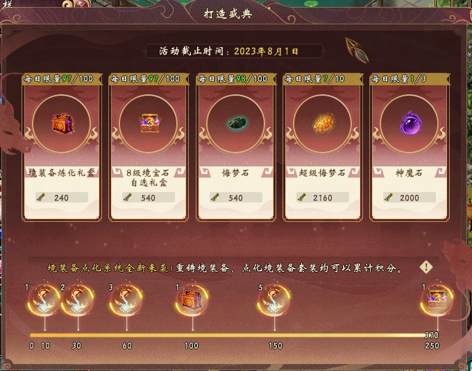 七月骄阳似火,烈日炎炎。在刚圆满结束第二届天下会武联赛之后,《新大话西游3》为广大玩家带来了一轮更新——境宝石种类新增、境装备主5件开启境宝石开孔、副5件开启炼化属性操作。同时,双版本也于7月26日重启了打造盛典与狂欢周活动,积分大奖送不停!欢迎各位新老玩家再次聚集于《大话3》,体验不一样的游戏乐趣。 【境装备系统迭代 尽享属性进阶】 作为一款MMO端游,装备对于玩家的重要性不言而喻,而境装备则是大话3中最高品质的装备之一。 本次《大话3经典版》新增了三颗不同属性的境宝石,境装备主5件(衣服、武器、靴子、项链、头盔)可以通过消耗大话币进行境宝石开孔,通过镶嵌玩家可以获得更多的装备方向,得到更高的能力提升! 而本次更新后,境装备副5件(腰带、护身符、护心镜、左手镯、右手镯)更是可以进行炼化属性操作,在NPC“墨阡陌”处同步新增了副5件炼化属性的查询展示。这些更新进一步加深了境装备的养成深度,玩家可以借此提升自己的实力。 【境装备打造盛典再启,打得越多返利越多】 神兵现世照耀九州,大话3双版本打造盛典于7月26日-8月1日激情再启!在活动期间,玩家可以通过进行境装备重铸、点化,来获得活动积分奖励,不同品级的境装备所获得的积分不同,打得越多,可领取的积分大奖越多。 (经典版打造盛典) 同时为了让大家尽享打造盛典,特意限时开放装备材料商城,每日限量出售部分打造材料!让玩家可以更便捷地提升装备品质。 【激情狂欢周 奖励拿不停】 7月26日-8月1日,七月狂欢周活动同步开启!经典版等级大于等于80级、免费版等级大于等于50级的玩家通过完成游戏内的不同活动,即可获取各种奖励! (经典版狂欢周活动截图) 《新大话西游3》本次对于境装备系统的迭代更新,无疑让玩家们对于装备打造拥有了更多的选择和机会,从而得以更好地享受游戏的乐趣。而打造盛典、狂欢周活动的开启,也让玩家们得以更尽兴体验游戏。同时,游戏内也有更多精彩内容,等待着玩家们前来探索。 让我们一起再聚话3,共游三界! |