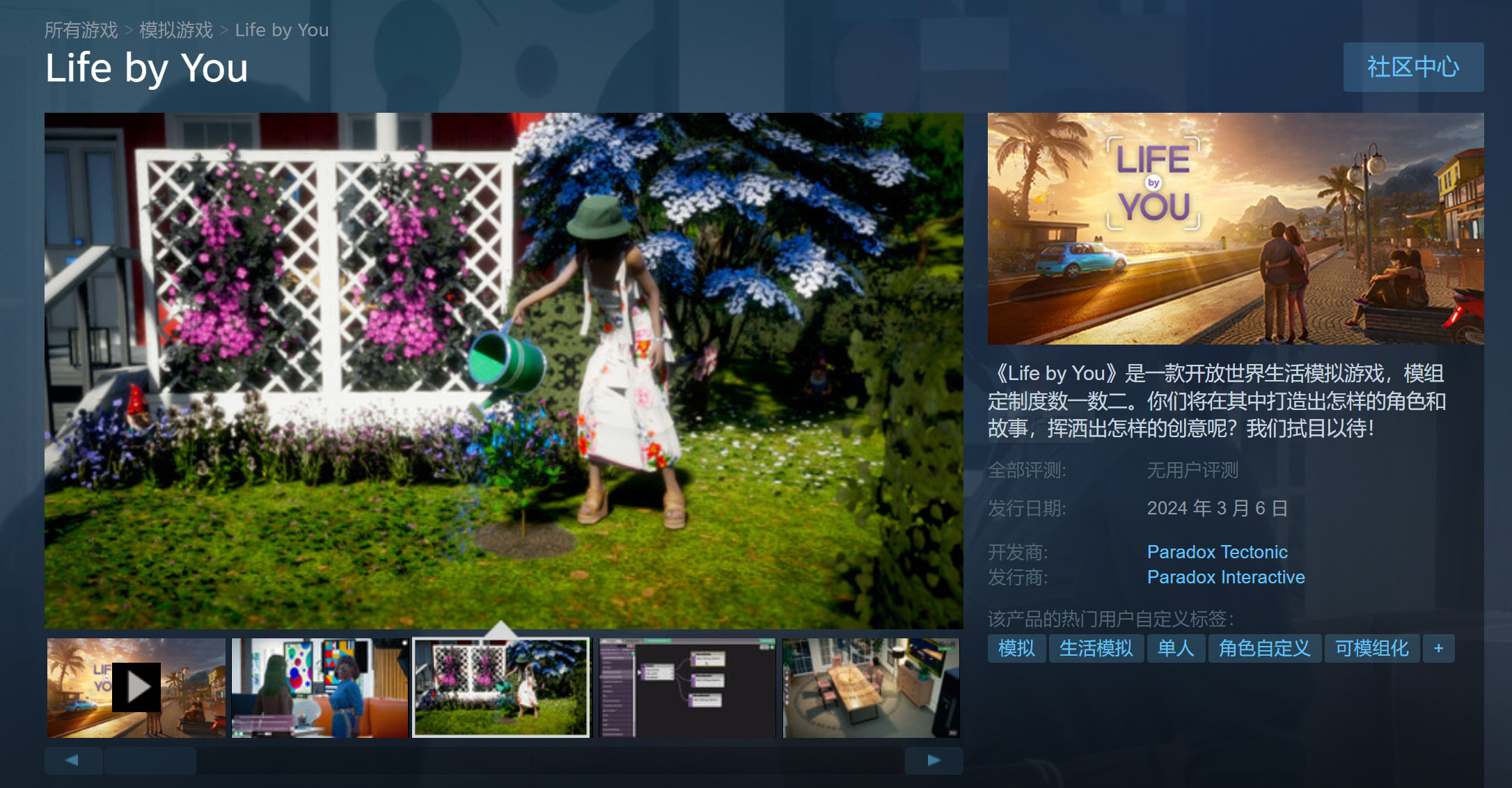 P社宣布生活模拟游戏《你的人生(Life by You)》跳票,抢先体验推出时间从原计划的2023年9月12日延期至2024年3月6日。该作将登陆PC Steam和Epic平台。 关于这款游戏 在《Life by You》中开启创意无限的新天地! 你们创建的小人、兴建的城镇、讲述的故事……通通由你们完全掌控。对了,还有各色模组!《Life by You》将以抢先体验模式推出。我们期待与你们,也就是广大玩家直接合作,敲定想法和内容以优先在游戏中开发,并一步步实现完整游戏的发布。此外,我们还将为你们带来各种创作者工具,让你们随心所欲设计生活,或者彻底打破生活本身的各种规则——有了天马行空的想象力,生活就将更精彩!《Life by You》是一款开放世界生活模拟游戏,模组定制度数一数二。你们将在其中打造出怎样的角色和故事,挥洒出怎样的创意呢?我们拭目以待! 开放世界,自由无限:跟载入界面说拜拜,尽情享受生活,用真实语言与人畅聊,开车或骑行去乡间踏青,还有各种任务等你发掘和完成,解锁全新体验。 天马行空,创意随心:用模组制作你自己的游戏内容,玩你所好。还有各种创作者工具,供你深度定制玩法,随时改变游戏体验。你的人生你说了算。 精彩生活,直接掌控:直接将小人拖拽到想要的位置,或者用第三人称视角让他们驾车出行。职场攀升,甜蜜恋爱,成家立业——体验一个人的酸甜苦辣,或道出一群人的缤纷故事。 真实语言,自由对话:游戏中的所有对话都采用真实语言,并根据角色所处的独特场景和情况生成。你甚至可以在游戏中打造属于自己的对话。 缤纷世界,尽在指尖:从零开始建造小人的梦想住宅或公司,里里外外自由装潢。拖拽、拆除、调整……玩转整座城镇! 虚拟角色,完全定制:使用人物创建工具,打造出属于你的家庭,细致入微地定制人格和个性,并随时调整人物着装和风格。 |