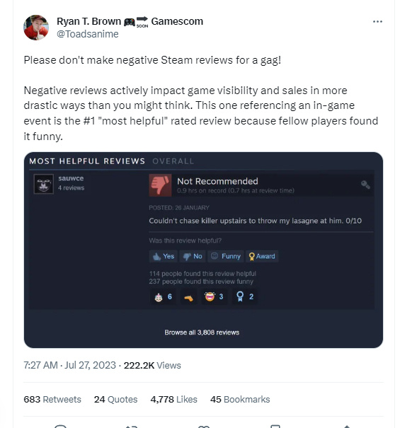 拿赞换分Steam无营养评论激增 游戏从业人员发出恳求