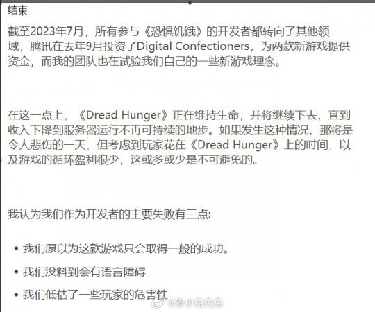 《恐惧饥饿》团队宣布永久停更 被黑客搞怕
