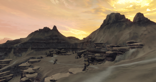 自太古铜门玩法上线后,战线一直持续推进中。根据前线快报,率先迎来了英魂原最终战役的【血战】和【莫问今朝】,参与决战热度共计超过60w!而其他的服务器,也将在完成第二阶段“摧毁逆魂之阵”和第三阶段“净化地脉清气”后,迎来这最终战役。 在最终战役中击败马王爷后,太古铜门的全新区域【朔风漠】也将揭开神秘面纱!经过一个多月来对太古铜门玩法的探索,相信少侠们已经迫不及待地想要了解一下这个新区域了吧~ 接下来就跟着镜头,抢先领略一下这片全新地图的风光吧! 走进朔风漠,映入眼帘的是无垠的荒漠,嶙峋的怪石,苍凉一词奠定了此地风光的基调。在地图上,少侠们可以发现,朔风漠与英魂原一样,被划分为了数个区域。 红堡营地 巨大的枯骨托举着眼前的高地,高地上驻扎着数个军营,这就是红堡营地,少侠们在朔风漠中探索时的大本营。 此处位于整片朔风漠中地势较高的位置,易守难攻,还能更好地观察这片区域的妖魔动向。 望戎川、三岔口 红堡营地以南,又是大片的荒漠,这便是望戎川与三岔口。英魂原中与此地接壤的野马沟、枭谷同样呈现出荒漠景象,想必少侠们不会陌生。 无垠的荒漠中随处可见被风沙侵蚀后的怪石,稀稀拉拉的树木在这片极为干燥的地域艰难生存。 赤渊 进入朔风漠地图,除了一望无际的荒漠地貌,最引人注目的就是纵贯朔风漠的赤红色河流【赤渊】。赤渊内的水流,呈现出血一般的色彩,妖冶至极。 夜幕降临,夜色为赤渊染上了深色,妖冶的鲜红被诡异的暗红取代,浓稠的水体缓慢地流淌在河道之内,不时冒出泡泡,更是令人毛骨悚然。 驼峰山 赤渊尽头以南,是巍峨的驼峰山,因山峰酷似似骆驼的驼峰而得名。山下,依旧是风沙侵蚀后的巨石,荒凉萧瑟。 朔风漠地域辽阔,可探索元素较英魂原更多,今日的介绍也只是其中的冰山一角。除了广阔无垠的大漠风光外,少侠们还将遇见怎样的挑战呢?感兴趣的少侠不妨登录游戏,亲自前往一探哦~ |