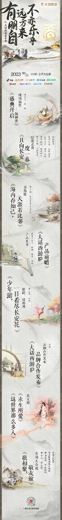 百万豪礼同庆,线上线下福利不停!2023大话西游嘉年华庆典即将在郑州隆重举办,神兽好礼、精美国货、飞天茅台、周年鸡驴宝盒齐上阵,二哥连夜安排福利获取攻略,看了肯定有收获! 现场福利惊喜不间断 两只神兽共贺嘉年 今年嘉年华现场送两只神兽,两只!这泼天的富贵也终于轮到咱们了!8月12日13:30,我们将在嘉年华的副舞台,抽取一位幸运玩家获得随机五常神兽一只;8月13日13:30,我们将在嘉年华的主舞台,抽取一位幸运玩家获得随机六艺神兽一只!一张票只能抽一次,可要想好选哪个神兽!记得准点前往相应舞台,不然大奖就被别人抱走啦! 神兽大奖不容错过,其他福利也别放过!鸡驴扭蛋机里装满了飞天茅台、格力家电、网易未央聚享年猪卡等多重好礼,听说转了都能带个礼物走,一张门票抽一次,一次就能满载而归,这样的几率平时做梦都不敢想,今天直接送到你手上! 除此之外,现场还有多重互动玩法将会给大家送出积分卡片,累计一定积分就可以前往现场珍宝阁换取周边好礼!咱的礼品有玄剑娥龙马雕塑、画中仙雕像、碧海潮生骊珠儿雕塑、连理同心逍遥生狐美人雕像、年兽手办……福气兄弟们可要牢牢抓住别丢了,快点拿着你的“通关文牒”去领福利吧! 看直播赢取重磅好礼 线上同享海量福利 考虑到部分朋友不能亲临现场,线上活动和福利,咱们也得安排上!8月13日14:00,直播间福利加码!不仅会为大家带来精彩的现场节目直播,更有大疆无人机DJI MiNi3、ipad(第十代)、周年鸡驴宝盒、黄金兽爪按摩捶、膳魔师大保温杯、鸡驴摆件、玄剑娥龙马雕塑等福利全部免费送! 8月13日14:00,【网易游戏大话西游】直播间内将为大家带来精彩纷呈的节目,各位熟悉的登场为大家带来大话西游IP产品前瞻,江湖会有更广阔的远方等着我们一同探索! 曾在《少年奇妙游》惊艳亮相的青年舞蹈家余瑜,今年也带来一曲美轮美奂的全新舞蹈,倾情演绎长安风雅;还有融合千年璀璨诗词文化的大合唱《敬相聚,敬友谊》,传递我们的大话兄弟情,铭刻我们最美好的重聚时光! 其他精彩节目查看节目单↓ cc直播、斗鱼、虎牙直播、视频号、抖音、快手游戏多个平台同步开播,8月13日14:00至16:00,直播间里不能没有你! |