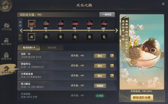 自太古铜门新区域【朔风漠】开放后,不少少侠又马不停蹄地赶往其中冒险,大家在探索的途中别忘了多去收集装备培养道具。然而《天下贰》大区中的福利远不止于此,还有永久时装、珍兽、饰件、觉醒体型、小宠这些精美好礼,少侠通通都能免费获得哦!话不多说,下面一起来看下这些免费外观福利吧~ 点击成长之路,拿尽免费惊喜外观 旧日之影 黑与红的经典配色,更衬少侠的飒爽英姿。乌纱帷帽后,一轮绯红弯月闪烁着星光,玄色薄纱半坠胸前,与黑铁铠甲相得益彰。这样帅气的永久时装,竟然能免费带回家? 点开界面右上角“成长之路”图标,打开界面后,少侠可在左侧找到【旧日之影】,点击后展开如下界面。 蓝色光标代表的是未完成事件,点击右下角“前往”,可自动寻路领取任务。 金色光标代表了已完成的事件,右下角会提示少侠领取任务奖励。 每完成一个地区的所有任务,少侠便可领取10-50金的地区奖励。当5个地区的任务都已完成后,就能免费领取时装【隐月飞鸿】啦! 新手福利 在“成长之路”界面左边第二栏“新手福利”处,少侠只需累计登录三天,即可领取人气小宠【泰哥儿】~ 不仅如此,累计登录八天,更有30天独立时间珍兽【幽潭玄花】免费送! 成长之路 点击左侧最后一栏“成长之路”,通过完成每日任务与成长任务,能积累相应的成长值。少侠可在左上角看到自己的当前成长值,当积累到特定数值后,少侠可领取到相应的阶段奖励。在成长值分别达到100、1300、2500、3700、4900时,都可获得时限为7天的【雀啾啾】饰件。 当成长值达到最高也即6000时,就能领取到【千机变·雀啾啾】所对应饰件,免费升级为永久了哟~ 玩转师徒系统,把好礼领回家~ 在大荒,拜师收徒是不少少侠的一大乐趣,不知大家是否有注意到进行师徒互动还有福利派送?打开师徒系统,在界面的左下角,可看到一个小房子的标识,点击可进入“师徒商店”。 里面上架了不少珍稀道具、外观与坐骑,供少侠们兑换获取。只需大家与师傅/徒弟保持多多互动,通过拜师礼、传功、每日养猪、组队等方式,积累师门同心声望,提升师徒亲密等级,使用师门同心声望和师徒金诺,就能兑换到以下坐骑与时装啦~ 探索太古铜门,拿精美外观、坐骑 还记得太古铜门内,每日晚上都出现在隐月潭小岛上的Boss清雨吗?击败她后,少侠会看见她的虚影,点击后与她对话,完成任务即可领取威猛神气的30天独立时间珍兽【冠雪】! 还有商店内可以使用晶魂声望以及太古铜币,免费换取各种外观道具哦~ 包括时装【流绪微梦】,以及三款风华表情【请过招】、【舒展筋骨】和【空降奇兵】,温馨提示:风华表情仅可用于在风华名片中展示,无法在日常直接使用哦~ 解秘大荒任务,激活觉醒体型 近日你可有注意到大荒里有不少“小朋友”仗剑走天涯?其实那都是觉醒体型状态下的少侠哟~只需前往九黎城(西:1057,北:390),与NPC卓英武对话,并完成任务【爆发·觉醒技能】即可激活~ 少侠不仅能激活觉醒技能,过程中还能获得大量经验返还,而且可以领取到时效为永久的正太/萝莉觉醒体型,简直是一举三得! 看着这篇福利满满的攻略后,你是否早已迫不及待前往大荒,计划把这些好礼都带回家呢?快快登录游戏,拉上小伙伴们一起,一边探险大荒,一边免费获取新的外观、坐骑和饰件吧~ |