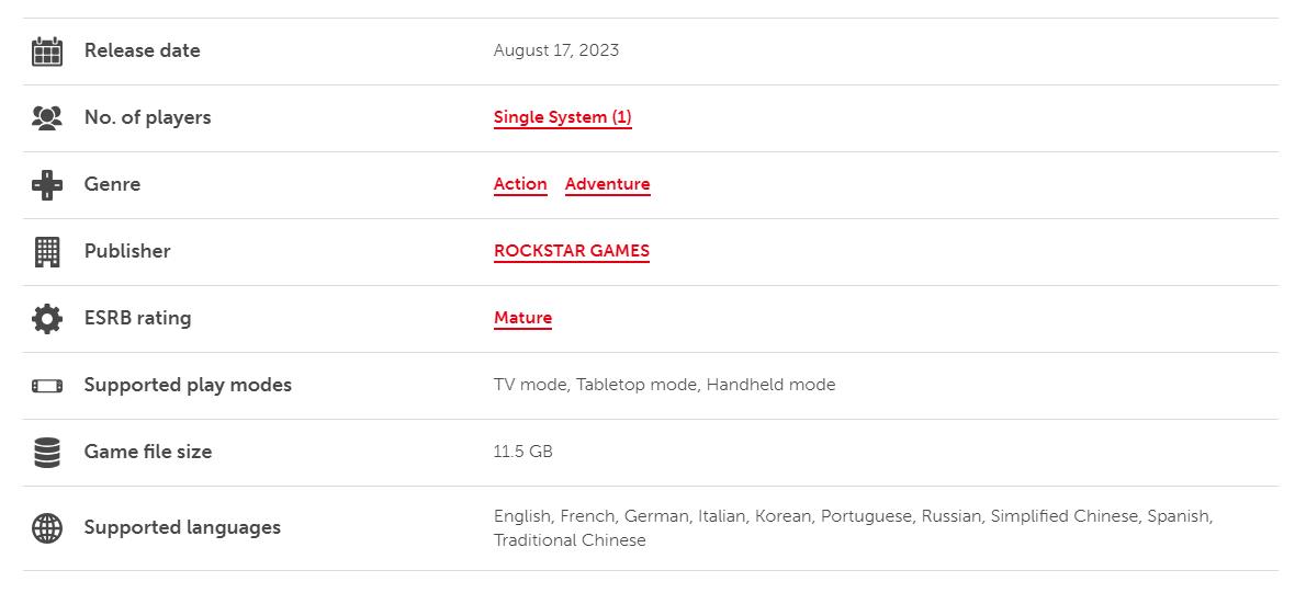根据任天堂Switch?eShop页面显示,Switch版的《荒野大镖客:救赎》容量大小为11.4GB,这包含了基础游戏和“亡灵梦魇”扩展。《荒野大镖客:救赎》将于8月17日登陆Switch和PS4,售价50美元。