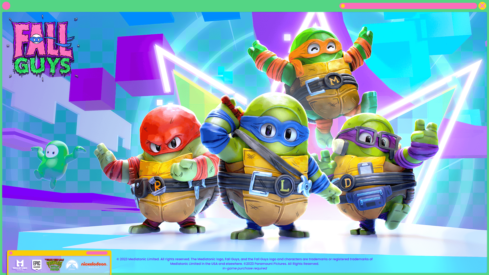 8月15日,《糖豆人》宣布将与《忍者神龟》展开联动,李奥纳多、米开朗基罗、拉斐尔、多纳泰罗即将加入《糖豆人》。他们将于北京时间 8 月 17 日下午 6 点至 8 月 31 日下午 6 点登陆商店,售卖内容包括以他们自己为主题的史诗级套装、以牛面怪和猪面怪为灵感设计的可穿戴物品、霹雳舞表情以及酷炫的庆祝等。