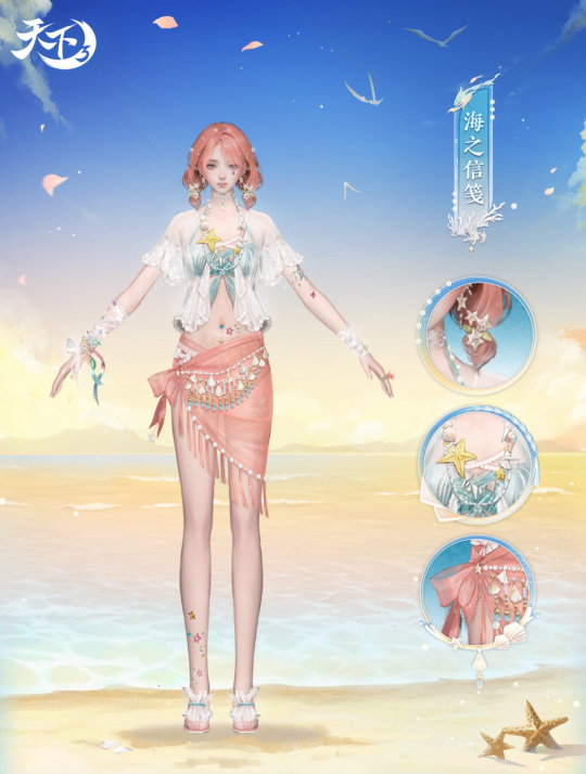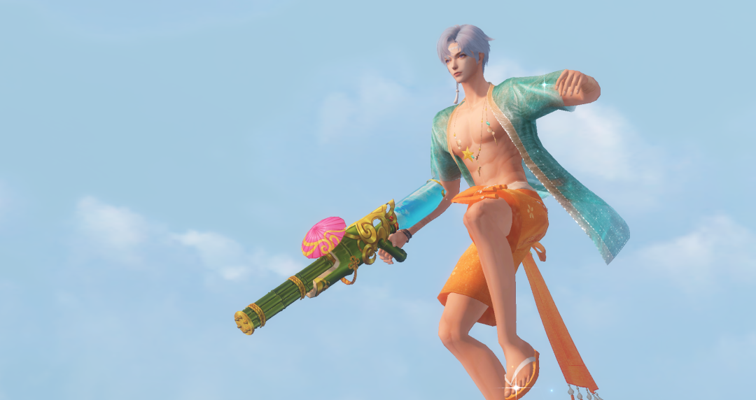 酷暑难耐,为了帮助少侠们消暑降温,一场夏日大作战即将在大荒拉开序幕!全新的泳装【海之信笺】同步亮相,为大家带来极致的清凉体验,更有特色水枪武器【水花四溅】趣味上线,为你带来超高回头率!事不宜迟,下面一起来看看最新爆料吧! 【海之信笺】时装清凉上线 潮汐知我心,寄君长相思。女装的【海之信笺】甜美动人,少女粉色的长发束成两侧及肩的短辫,透亮的珍珠与海星装点其上。只见她身着吊带泳衣,外搭一件清透遮阳服,项链环绕脖颈,相连一串精美挂饰。为衣装注入海洋般清爽的气息,再搭配纱裙围环于腰间,勾勒出玲珑身材。有此佳人,何不与其共踏海浪,赏夏夜璀璨星河? 赠卿珠贝,诉吾心意。男款【海之信笺】尽显夏日风情,少年的金发耀眼迷人,珠链抹额自一侧坠下,别出心裁。颈间挂饰与女款设计相呼应,外衬颜色为莹亮的宝石蓝,风度翩翩,优雅又贵气。短裤选用明媚的橙色,少年感十足,彰显无穷的青春活力,漫步在无垠沙滩之上,他便是最亮眼的风景线~ 【水花四溅】武器助力欢乐一夏天 【水花四溅】是一柄充满了童趣的水枪。修长的翠竹为枪管,再搭配上冰蓝色的水槽,清新的配色让人暑意顿消~枪管上粉色的小伞十分吸睛,为水枪增添了几分可爱,带着它行走大荒,想必能为你带来超高的回头率! 刺激的夏日大作战,即将于本周游戏更新后开启!届时,【海之信笺】与【水花四溅】都会同步登场!看完爆料后,少侠们可有蠢蠢欲动,想要把以上清凉泳装、趣味武器收入囊中?欲知更多具体的获取方式,那可千万别错过本周的更新公告啦~ |