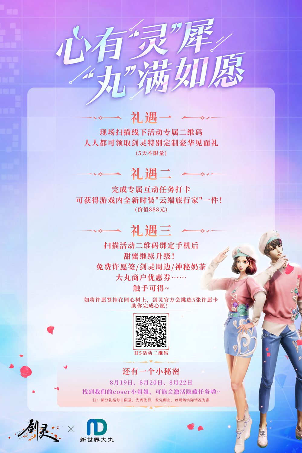 七夕将至,纸短情长,诉不尽两情缱绻?那就来《剑灵》,过一个特别的七夕吧!八月新版本巨神“心”风暴来袭,限时地图“巨神之心”重制归来,兑换奖励全新升级,更有精彩纷呈的立秋活动集结上线,众多好礼送不停。除此之外,由《剑灵》携手上海新世界大丸百货展开联动,共同打造的七夕特别活动也已拉开序幕,同心许愿领浪漫好礼,挑战成功送全新时装,还有coser小姐姐带着神秘隐藏任务等你来邂逅! 巨神“心”风暴 八月新版本今日上线 龟裂大地的危机与机遇,限时地图“巨神之心”入口封印再次被解开!犹记得也是在去年金秋之际,《剑灵》首度开放“巨神之心”地图,受到了玩家们的一致热捧。作为一张限时野外地图,“巨神之心”是古代人在陨石碎片内部建造的神殿,分为上下两层,玩家每日在神殿内停留的时间有限,可使用巨神之心沙漏补充时长。完成“巨神之心”每日任务,可以获得百音石,在上下两层探索都可以获得永恒石、耀眼永恒石,集齐这些材料,就可以找NPC商人江上海兑换各式道具。 值得一提的是,此番再启“巨神之心”地图,《剑灵》还对兑换道具进行了一番更新,加入了最新的黑器幻影武器,只要集齐所需材料就可以直接兑换获得。 在新版本中,游戏还同步更新了诸多新内容、玩法,包括推出绿调嘻游在内的多套设计独特、各具特色的时装,开启了立秋活动:红儿宝箱等。 剑灵X新世界大丸 异世界Lv999的同心许愿 想要心有“灵”犀,那就让同心树让你“丸”满如愿吧!《剑灵》“牵手”上海新世界大丸百货跨次元共植同心树,邀请广大灵芝前来许愿。 这场别开生面的“异世界Lv999的同心许愿”活动现已开启,8月18日至8月22日,同心树还将来到三次元,在上海新世界大丸百货接受大家的跨次元许愿。只要在现场扫线下活动专属二维码,人人都可领取剑灵送出的豪华见面礼,5天不限量!领取完见面礼之后,玩家还可以选择挑战线下专属互动任务打卡,挑战成功的玩家可领取到游戏内全新时装“云端旅行家”。 8月19日、8月20日、8月22日三天甜蜜继续升级,将会有coser小姐姐惊艳亮相现场。她可都是带着“特殊任务”而来,激活隐藏任务并完成挑战,还可以免费领取许愿签,获得剑灵小周边、免费茉莉奶白奶茶、活动优惠券等奖励。许愿签在填写好愿望后,可以挂在许愿树上,在活动结束后,游戏官方会挑选5张许愿卡,助力玩家实现愿望!许愿签、赠送的游戏时装和现场小礼品均每日限量,先到先得,发完即止。 更多福利活动迎秋呈现 好礼与你相约 秋天是个收获的季节,七夕更是一个双向奔赴的浪漫节日,那就快来和好礼“约”起来吧!《剑灵》在八月新版本上线的同时,精心准备了多个福利活动,缤纷好礼期待与广大玩家不见不散。其中“洪门经验当钱花”活动,活动期间玩家只要根据活动要求对活动经验槽充能,积累的经验值就可以按照一定比例,折换成点券在该活动中“购买”相应的道具,经验真的能当钱花,这么给力的活动绝对不容错过!“一举成名”活动也已火热开启,活动期间绑定角色所在大区下任意角色完成指定挑战内容,即可在次日12点领取相应奖励。 《剑灵》八月新版本巨神“心”风暴如期上限,伴随着版本更新,游戏还带来了一系列的福利活动,让玩家们在游戏中能够拥有更多的体验和收获。除此之外,由《剑灵》与上海新世界大丸百货联动打造的“异世界Lv999的同心许愿”活动也在今日同步上线,去上海新世界大丸百货寻找你的七夕奇缘吧!这场跨次元的七夕狂欢盛宴,期待你的参与。 关于剑灵 《剑灵》(BNS),全称Blade & Soul,是由著名网游开发商NCSOFT开发,腾讯游戏代理的一款青春潮流的3D MMORPG。《剑灵》在设计上力求突破传统,多元潮流的时装,华丽唯美的画面,流畅动感的动作,拳拳到肉的打击感,以及飞天入地的体验令人心驰神往,是一款具有划时代创新精神的网游巨作。 关于腾讯游戏 腾讯游戏成立于2003年,是全球领先的游戏开发、运营和发行平台,也是中国最大的网络游戏社区,致力为玩家提供优质的互动娱乐体验。 目前,腾讯游戏旗下拥有超过140款自研和代理游戏,为全球200多个国家和地区数以亿计的用户提供跨终端的互动娱乐体验。腾讯游戏联动其在文学、动漫、影视领域的丰富跨媒体IP资源,打造优质的游戏体验。 腾讯游戏亦致力于用游戏的方式服务社会,力求在游戏中探索更多的社会价值;同时,携手行业伙伴及用户打造健康游戏生态。 Spark More!去发现,无限可能 |