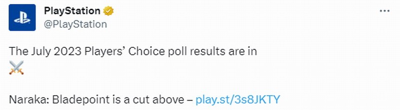 近日PlayStation官方发推宣布,多人动作竞技游戏《永劫无间》成为2023年7月PlayStation平台最受玩家们欢迎的游戏,恭喜网易!