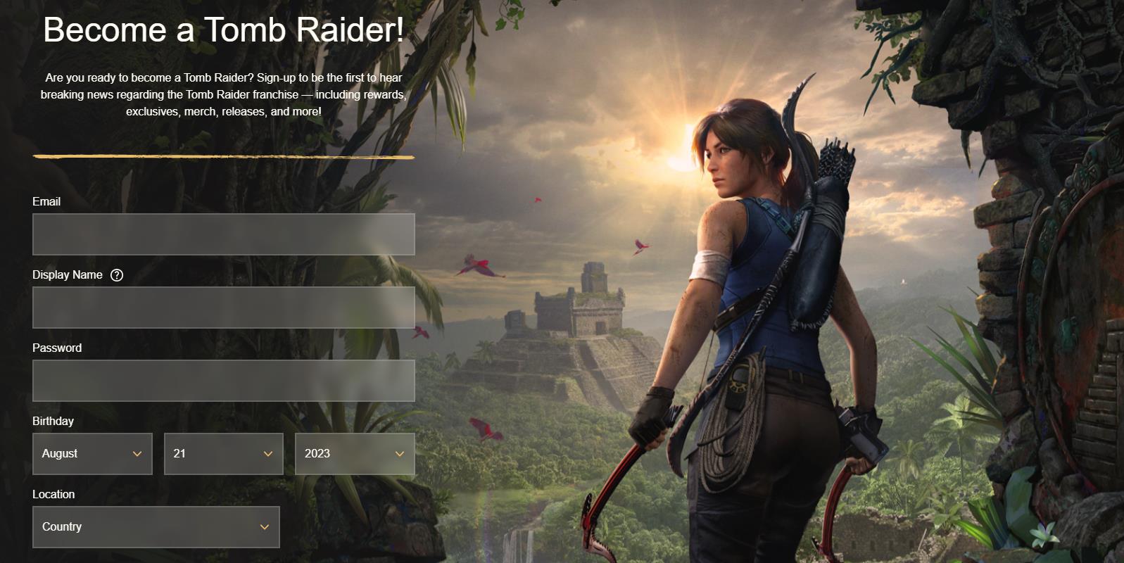 目前,《古墓丽影》官网已进行更新,网站标题为“Become a Tomb Raider”,并要求玩家注册以成为第一个听到有关《古墓丽影》系列重大资讯的人,包括奖励、独家报道、商品、发布等等。