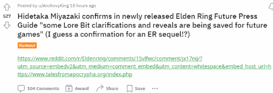 环学家给自己画饼 分析攻略书认为《艾尔登法环》有续作