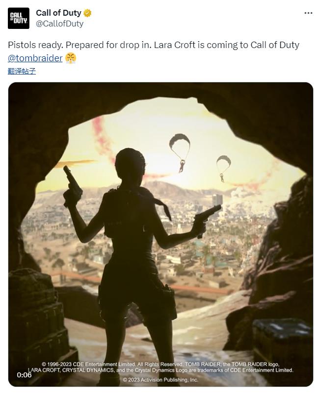 《使命召唤》宣布联动《古墓丽影》,劳拉·克劳馥即将加入《使命召唤:现代战争2》和《使命召唤:战区2》,具体上线时间和内容待定。