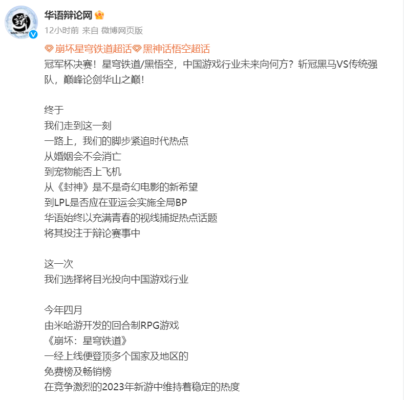 网友乐了!华语辩论网拱火:黑神话VS星铁哪个更强?