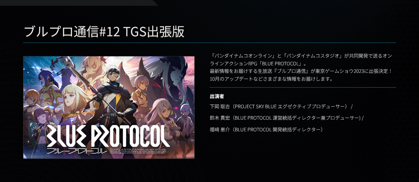 发行商万代南梦宫现已开设了 2023 年东京电玩展官方网站,并公布了公司在该活动中将展示的游戏阵容和直播时间表。2023 年东京电玩展将于 9 月 21 日至 24 日在日本千叶幕张展览馆举行。 游戏阵容: ·《蓝色协议》(PC)——展台展示 ·《偶像大师闪耀色彩:棱镜之歌》(iOS、安卓)——展台 ·《SAND LAND》(PS5、Xbox Series、PS4、PC)——现场可玩,展台 ·《SD高达G世代永恒》(iOS、安卓)——现场可玩 ·《刀剑神域:最后的回忆》(PS5、Xbox Series、PS4、Xbox One、PC)——展台 ·《Synduality:Echo of Ada》(PS5、Xbox Series、PC)——现场可玩,展台 ·《破晓传说》(PS5、Xbox Series、PS4、Xbox One、PC)——线上展示 ·《铁拳8》(PS5、Xbox Series、PC)——现场可玩,展台 展台时间表: 9 月 22 日 · 14:00 至 16:00 —— 2023 年东京电玩展 Tekken Talk 铁拳座谈会 9 月 23 日 · 12:15 ——《蓝色协议》制作组通讯 #12:2023 年东京电玩展版 · 14:00 ——《刀剑神域》2023 年东京电玩展特别展台 · 15:45 ——《铁拳8》2023年东京电玩展特别展台 9 月 24 日 · 11:00 ——《偶像大师闪耀色彩:棱镜之歌》2023 年东京电玩展特别讨论展台 · 12:30 ——《SYNDUALITY Project》2023年东京电玩展特别展台 · 15:45 ——《SAND LAND》游戏特别展台 现场演示将在 9 月 23 日当地时间 10:30 开始。期间万代南梦宫将直播《蓝色协议》制作组通讯、《刀剑神域》展台、《铁拳8》展台、《破晓传说》2 周年纪念特殊直播等,期间将穿插“Project IM@s vα-liv”游戏挑战,虚拟偶像们将挑战各种游戏。 |