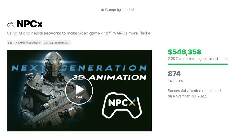 初创公司NPCx筹集300万美元 开发AI游戏NPC动画