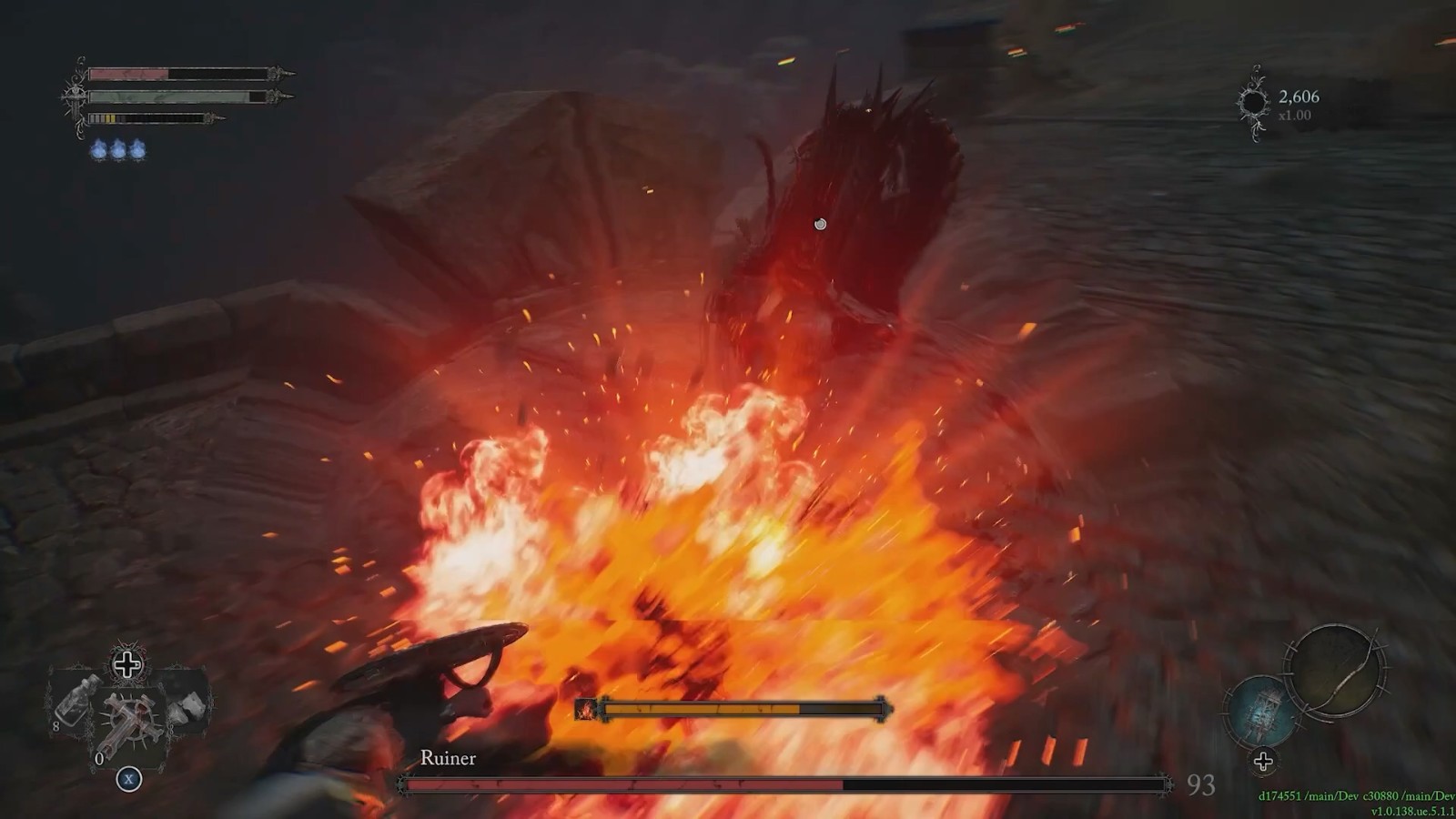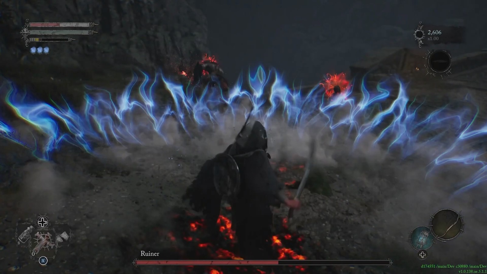Runier攻击时使用一个巨斧,不管是战斗还是大踏步,都会有火焰爆炸AOE伤害,非常考验玩家战斗时的走位。死亡后,可以继续和Boss战斗,但再次死亡会回到最近的检查点。