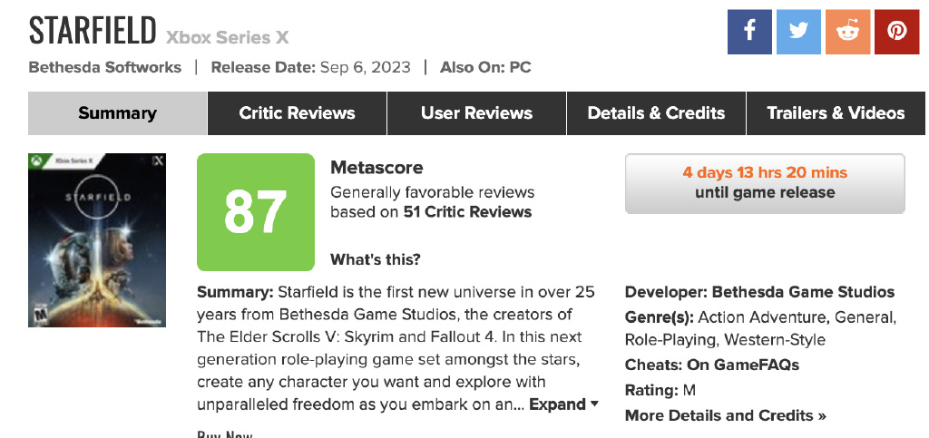 B社年度大作《星空》,在今天凌晨开放了豪华版玩家的超前体验内容。尽管是工作日,但这款游戏还是以20万人的同时在线人数,成为了Steam上仅次于CSGO、《博德之门3》以及DOTA2的热门游戏。从玩家数据来看,完全对得起官方此前的卖力宣发。 与此同时,《星空》的媒体评分也迎来了正式解禁。那些提前玩到本作的业内媒体,纷纷为这款太空题材的开放世界游戏做出了评价。只是最终结果跟许多人想象中有所出入,IGN和GS这两大权威游戏媒体都只给出了7分。 IGN认为《星空》的战斗系统相当优秀,不过游戏开场冗长、地图探索有着一定的进步空间,但其广阔的角色扮演任务和令人尊敬的战斗使其吸引力令人难以抗拒。 GameSpot 认为游戏故事较为薄弱,更多接近于“罐头游戏”。 M站为《星空》打出的分数为87分,但今年作为游戏大年,超90分的游戏在过去的这大半年里已经累积了相当多。大家所熟知的《博德之门3》、《塞尔达传说:王国之泪》都以96分的高分排在第一,《星空》的87分已经排在几十名开外了。 倘若正式发布后评分再次下降,《星空》恐怕会跌出TOP50。这对一款意在竞争TGA年度最佳游戏奖项的作品来说,显然无法接受。 由于目前《星空》才解禁不久,所以对游戏剧情的评价很少,大伙讨论的焦点大多集中在游戏机制和实际体验上。譬如玩家们预想中的宏大星际探索并没有出现;不同地图间也不是无缝的,做不到驾驶飞船穿越银河抵达另一个星球。 还有玩家反馈,即便是普通的场景切换,《星空》的处理方式也比较“经典”,开个门都需要黑屏重新加载。B社的老粉们或许可以将其形容为“B社风格”,但萌新多少会觉得这不像现在这个时代的作品。 IGN为《星空》给出的评分为7分 ,该区间的游戏标签为“Good”,这同时也是他们点评游戏时最爱打出的分数。值得一提的是关于7分的含义,今年年初IGN还特别进行了表态,总结起来就一句话——7分代表的就是“平均水平”。 能够被打7分的游戏肯定不差,但问题在于玩家们对《星空》的期待太高,一直在以“年度最佳游戏”的标准在要求它。所以媒体评分解禁后,粉丝们心中难免感到低落。 不过《星空》的全貌,目前并未完全展示出来。参与测评的媒体和豪华版用户,所占的比例和体验的流程长度也比较有限。待到9月6日游戏正式发布,当更多人体验过后得出的结论,或许会更加客观。 那么目前《星空》的表现达到大家的心理预期了吗? |