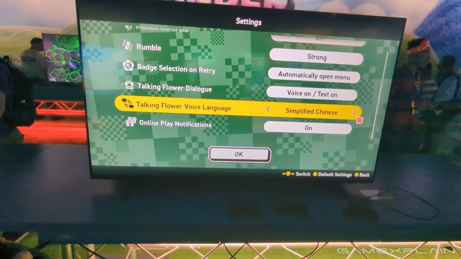 根据外媒GameXplain发布的一段《超级马里奥兄弟:惊奇》试玩片段显示,该作的“闲聊花花”语音确定支持简体中文和繁体中文配音,并且还可以设定语音的关闭和打开。