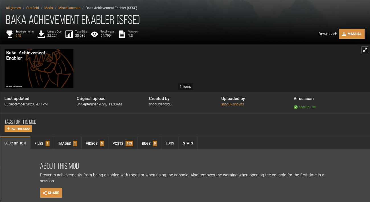和 B 社之前的 RPG 一样,在《星空》中如果玩家使用某些 Mod 或是使用控制台,游戏就会禁止他们获得任何成就。不过和《上古卷轴5:天际》和《辐射4》等游戏一样,所有问题都可以用 Mod 解决,即便是 Mod 导致的问题。 实际上,为了绕过成就锁定,Mod 制作者和 B 社之间从游戏 9 月 1 日抢先体验开始就展开了一场拉锯战。当天 NexusMods 网站的 Mod 制作者 Priqrade 就上传了一个绕过成就锁定的工具。另一位用户 Rennieboy 提供了有关如何使用该 Mod 游玩的详尽说明。 但随着《星空》不断推出更新,B 社的成就锁定方式也在不断更新;而 Mod 玩家的希望火炬也传承至另一位制作者 Shad0wshayd3 手中,他推出的 SFSE“Baka Achievement Enabler(笨蛋也会用的成就开启工具)”也获得了许多玩家的好评。 这款 Mod 还允许玩家在使用控制台命令时获得成就,甚至可以禁用使用控制台时烦人的弹出窗口。如果玩家之后删除该 Mod 或由于游戏更新该 Mod 无法使用,玩家的存档甚至会以未添加 Mod 的存档继续保存,这意味着玩家能够在该村当上继续获取更多的成就。 |