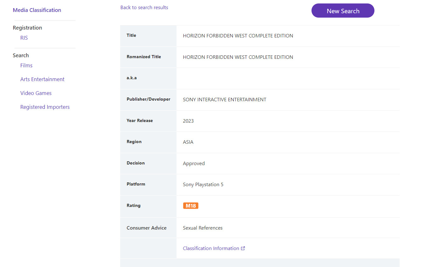 新加坡分级机构IMDA曝光了《地平线:西之绝境-完全版》,看来距离官宣不是太远了。