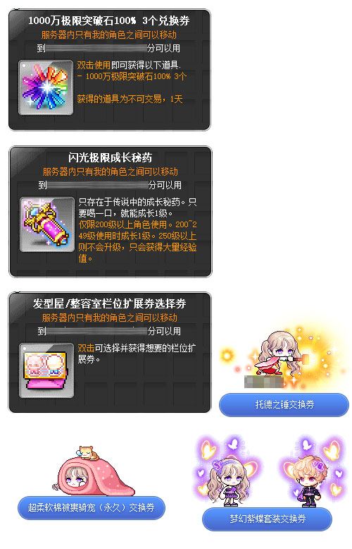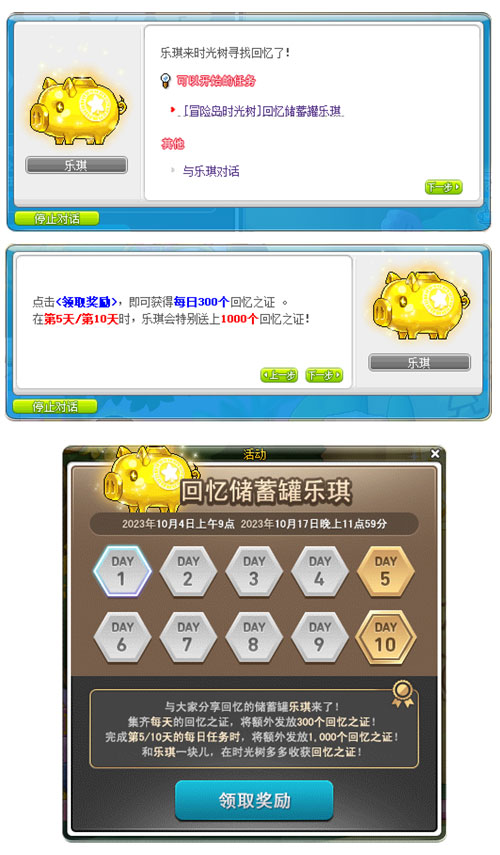 中秋国庆佳节将至,如果你不想在长假高峰期出游,那么经典端游《冒险岛》已经为你准备好了浪漫的热气球,带你一览冒险世界的绝美景色啦~丰富的节日专题活动今日上线,一起来瞧瞧吧! 神奇时光树,撰写限定美好回忆录~ V201版本【冒险岛时光树】活动上新,9月20日起至10月17日,玩家可接取[冒险岛时光树]时光树留念任务,消灭等级范围内怪物,给时光树照相机补充能量就可以获得回忆之证。 同时,活动期间找到NPC维尔利接取[冒险岛时光树]极限海豚戏水任务,向维尔利支付100个回忆之证,它将喷水把你抛向高处,经过云层发现黄金鱼会让维尔利获得力量继续向上喷水,每次上升的时候都能升级。每进行到第10次游戏时,最大升级概率提高2倍! 另外,10月4日至10月17日,接取[冒险岛时光树]回忆储蓄罐乐琪任务,每日回忆之证集齐后找到乐琪,将额外获得300个回忆之证!完成第5/10天的任务时,可以额外获得1000个回忆之证。 通过完成照顾时光树精灵的任务和消灭强大怪物,获得的回忆之证与挑战之证都可以在活动地图对应的商店兑换各种超值道具! 每日签到有福利!精灵兄弟的黄金马车开启~ 2023年10月11日至2024年1月9日,打开精灵兄弟黄金马车签到界面,每日累积在线时间1小时,通过完成按钮累积签到。盖上签到图章,即可获得大量礼物哦~ 精灵兄弟的黄金马车每当累积签到7次时,将发放特别礼物哦。 快乐长假来冒险,管管陪你过佳节! 9月29日至9月30日,每天下午14:00-16:00,冒险岛管理员将根据排期上线与玩家一起送祝福,谁的祝福最美、最赞或最顶,谁就有机会获得管理员送出的中秋随机小礼物一份。 10月1日至10月3日,每天下午14:00-15:00,冒险岛管理员将根据活动排期上线做客玩家的小屋,希望“被做客”的玩家请提前邀请好自己的亲朋好友在小屋等待,等管理员上线后用喇叭呼唤TA进入。管理员将对屋内在场的所有玩家送出随机小礼物一份,同时小屋点赞个数达到200的小屋主人,还能额外获得永久兔年勋章哦! 10月4日至10月6日,每天下午14:00-15:00,冒险岛管理员将根据活动排期登录服务器,前往射手村召唤黄金蛋,打爆它们将有机会获得大量金币。同时,管理员还将为前往现场参加活动的玩家施展强力buff,助你经验up、战斗力up! 今年的中秋节国庆节再次连续放假,让大家有了更多休闲娱乐的时间。作为中国的大节日,盛趣游戏萌芽工作室总经理胡婵君及中国冒险岛项目组尤为重视在此期间,玩家们的游戏体验。除了丰富的版本活动上新之外,假期的每一天,冒险岛管理员们都将与玩家们共同度过。无论是互送祝福还是做客小屋,其目的都是为了给大家派送福利~所以想要限定好礼的冒险岛玩家们可别忘记上线游戏参与活动哦!更多游戏相关内容敬请关注:《冒险岛》官方网站http://mxd.sdo.com/web6/home/index.asp 还可以关注冒险岛微信公众号(名称:冒险岛MapleStory),获取游戏趣味内容哟~ |