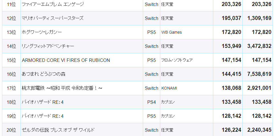 10月7日,日本专业数据站公布了2023年日本游戏市场游戏销售排行榜,几乎满屏都是任天堂游戏,TOP10任天堂占据了8席,《塞尔达传说:王国之泪》以绝对优势登顶。