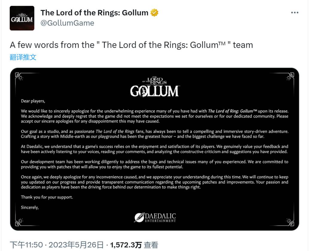 Daedalic工作室在今年5月,上线了史诗级魔幻小说IP《魔戒》的衍生游戏《魔戒:咕噜》。由于极为特殊的主角设定,游戏从宣发阶段就不被玩家所看好。而在正式上线后,《魔戒:咕噜》因为画面过时、玩法无聊、BUG频出而反响不佳,成为了M站今年评分最低的游戏。 到8月份时,《魔戒:咕噜》在Steam的在线玩家人数榜上的曲线降到了冰点。部分时间段,在线人数甚至会降到零。通常情况下,你只能看到两位数的在线玩家,这对一款大型游戏来说显然已经到了难以为继的地步了。 在上线这款游戏却未能取得预想中的效果后,官方随后补充了一封道歉信,承诺会对游戏进行更新优化。可时隔三月,玩家们不仅没有等到能改善游戏体验的更新,反倒得知了两个令人大跌眼镜的消息。 第一个令人讶异的消息是Daedalic工作室并未发布道歉声明,外网游戏媒体GameTwo在采访两位Daedalic的前员工时得知,今年5月发布的官方道歉声明是由ChatGPT编写的,Daedalic的开发人员跟玩家一样,是通过官方推特了解到这则消息的。 道歉信的实际经手者其实是发行商Nacon,这也解释了为什么玩家们没能等到后续的更新。(虽然大家也不认为更新有用) 第二则消息则是《魔戒:咕噜》的游戏预算,根据Daedalic工作室的一份文件中显示的内容,这款作为2023年评分最低游戏之一的作品,开发预算达到了1500万欧元(约合人民币1.15亿)。就游戏的体量来说,这已经相当惊人了。可从结果来看,好钢似乎没用到刀刃上。 2023年是少有的游戏大年,从年初开始业内就不断涌现出许多口碑之作。只是在一众新游戏中,也不乏市场表现平平,甚至是上线后短期内就经历玩家大量迅速流失的情况。《魔戒:咕噜》如此,高开低走的《暗黑破坏神4》也是如此。 目前跟《魔戒:咕噜》有着类似境遇的游戏还有《红霞岛》,同样是开局“褒姒”,但Arkane Studios一直没有放弃这款游戏,并真正进行着游戏更新。近期《红霞岛》就经历了第二次大更,在线玩家人数提升了66%。但由于玩家基数过低,当前的在线人数依然没有破百。 当下,Daedalic已经宣布停止了开发工作,转而将侧重点转移到游戏的发行上。从现阶段的情况来看,《魔戒:咕噜》的处境已经相当不妙了。非要说这其中的意义的话,《魔戒:咕噜》算是用自己的方式,让广大玩家们记住了它。 而在今年12月,《魔戒:咕噜》还将登陆Switch平台。那么大家觉得这项计划,能够改变现状吗? |