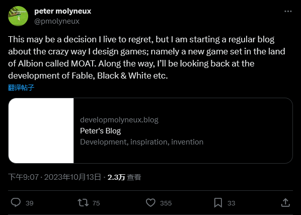 《神鬼寓言》系列主创 Peter Molyneux 近日透露了他的下一款游戏将发生在“阿尔比恩中”。“阿尔比恩”也是现已解散的开发商 Lionhead 的《神鬼寓言》系列的背景世界。需要注意的是这和 MMORPG《阿尔比恩Online》没有关系。 这是自这位开发者去年在 Gamelab 大会上宣布该项目以来他首次公开游戏新细节。他还表示游戏包含“以前从未在游戏中出现过”的全新机制。 Molyneux 上个月透露,该游戏目前的代号为“MOAT”(缩写)。 他通过推特(X)上公开了关于“阿尔比恩”的消息。和推文同时发布的还有游戏的开发进展博文更新。 鉴于微软目前拥有《神鬼寓言》系列的商标,且可能拥有该系列的版权,目前尚不清楚“阿尔比恩”将如何融入 Molyneux 的新作中。也有可能他能够说服微软允许他制作新的《神鬼寓言》作品,但更有可能的是“阿尔比恩”只是一个普通的英文词汇——因为在几个世纪前它是英国的别称。 |