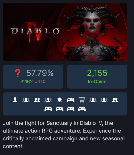《暗黑破坏神4》在今日凌晨更新了第二赛季,虽然在临上线前因为不知名的原因,第二赛季比预定时间晚了几个小时才正式实装,但终归还是让玩家们在当天玩到了这款游戏。 新赛季的更新内容包含全新剧情、新能力“吸血鬼异能”、全新装备、新世界事件、5个全新终局boss 等,此外还有大量玩法改进。而不单单是第二赛季的更新,《暗黑破坏神4》也于今日同步上线了Steam。 鉴于《暗黑破坏神4》首发距今已经发布了四个月,同时也为了吸引新玩家的加入,游戏首发的三个版本:标准版、豪华版、终极版都优惠了25%,最终售价分别为366元、467.25元、519.75元,Steam玩家“晚买享折扣”的老梗再一次应验。 不过从《暗黑破坏神4》的Steam数据来看,暴雪想要达成预期目的似乎并不是件简单的事情。今天是《暗黑破坏神4》新赛季开始的首日,但Steam同时在线玩家人数峰值只有2027人。从作品本身的体量来说,这个数字远远达不到要求。 此外,在登陆Steam后《暗黑破坏神4》不可避免地会更加注重评价。尽管许多玩家的实际体验时间还不足1个小时,但不妨碍他们给出差评。SteamDB 数据显示,本作目前好评率为57.79%,整体为“褒贬不一”。 当下,关于《暗黑破坏神4》的差评方向主要集中于两点。其一是对游戏网络连接问题的不满。《暗黑破坏神4》在上架Steam后无需经过战网登录,但玩家们还是得拥有战网账号。对于国内玩家来说,在不开加速器的情况下,想要正常体验游戏的难度很大。 其二则是玩家们对游戏的开发者暴雪的不满。部分人甚至入手游戏的原因,就是为了打差评,达成目的之后就进行了退款。现阶段《暗黑破坏神4》的Steam评价数量还在上升,后续或许还会产生新的变化。 而追根溯源,暴雪选择在第二赛季更新之际,让《暗黑破坏神4》在Steam上发布,也属于是挽回玩家的一种举措。毕竟Steam本身,就代表占据着相当大一部分市场份额的PC玩家。可因为种种原因,最终的结果未达预期。 就在几天前,微软完成了对动视暴雪的收购。游戏产业分析师张书乐就认为: “微软重启回归中国的可能性极大,但鉴于此前动视暴雪在中国市场将近20年的傲慢形象,加上暴雪全家桶在中国市场的高光不在,以及技术上对游戏厂商运营实力要求较高,暴雪全家桶的回归目前或许难有接盘侠。” 失去中国市场后,暴雪游戏不论是《守望先锋2》还是《暗黑破坏神4》,都没能再创造出前作那般的游玩热潮。倘若第二赛季的更新无法挽回颓势,这款已经发布了四个月的游戏,后续的运营只会更加艰难。 那么大家对此又有什么想说的呢? |
