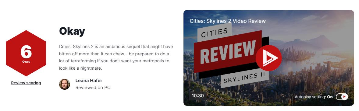 《城市:天际线2》M站均分77 IGN评6分:像半成品游戏