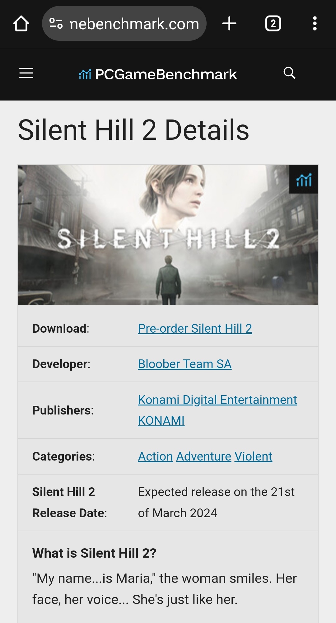 根据PC游戏基准测试网站PCGameBenchmark的数据显示,《寂静岭2:重制版》将于2024年3月21日发售,这与游戏配音演员声称的2024年初的发售窗口相符合。如果这个日期准确的话,科乐美可能会在12月的TGA颁奖典礼上公布这个消息。