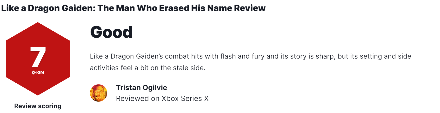 《如龙7外传》IGN 7分:正餐前的开胃菜