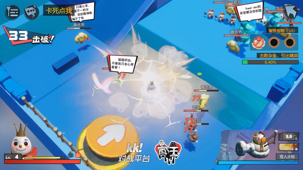 普信男蜜汁自信,恋爱脑先哭后舔,忍无可忍?绿茶油王面对面喂饭,其心可诛!女神竟被海王钓,舔狗备胎终日以泪洗面.....每天被甜甜的恋爱氛围包围,却只知道七夕在周二的万年寡王,仿佛连空气都弥漫着一股爱情的酸臭!是时候开始反击了,我的朋友!立刻集结到KK对战平台,加入大型婚恋……哦不对,大型欢乐拆情侣对战地图《寡王》,体验搞笑派对射击战斗+Roguelike策略对战的奇妙玩法组合。(认真脸)在圣战日“双十一”来临之际,让我们高举雪王炮,以FFF团之名,对异端情侣进行审判吧! 【超合理反转剧情,大型情场欢乐射击对战】 “异端情侣们每天矫情撒狗粮,大FFF团将在圣战日执行正义。而你早已做好冲锋陷阵,赐予邪恶异性恋天罚的觉悟。怎料,堂堂FFF团长居然在最后时刻产生了渴望脱单的腐化思想,这还了得?!拿起武器,把团长打倒吧!”世界观如此庞大、真实,剧情越品越合理,带着满腔怒火加入圣战,拆情侣,当寡王,把FFF团做大做强! 地图采用多人对战+Roguelike玩法,并制作了超大的“情场”地图,圆滚滚的你拥有糯米糍般的弹跳,还有多个专灭情侣的华丽技能,凭借雪球般的“滚球”身法大秀走位,打出紧张刺激的超高速战斗节奏,射击场面一度陷入可爱与欢乐之中。 地图提供了爱心霰弹枪、默默狙击枪、雪人步枪等多种武器,每把枪械属性各异,不但能带来独特的打击手感,更可以在情场上玩出各种套路,达成超高连杀。正所谓一方水土养一方枪炮,每把武器都很有来头,购买时请仔细阅读使用说明,比如爱心霰弹枪满8000万减800,跳楼折扣不容错过;毛毛兔火箭筒送礼首选,不信我送你一发试试? 战斗中每次升级,都会提供经典Roguelike的三选一提升,囊括了针对技能、枪械、被动属性等众多升级项目,每次选择将对后续战斗产生重要影响,结合情场形势做出合理抉择,将会令你越战越勇,寡到后来连自己都怕。 【情场达人各显神技,烧话连篇哪句竟是你自己?】 地图中,你将面对海王、绿茶、舔狗、备胎等十余种情场老手/苦手,他们可是各有绝活。“绿茶”精通茶艺,用花言巧语调制一杯绿茶扔出,喝上一口便会丧失攻击力;“油王”则不负油腻之名,甚至能喷出隔夜油,降低移速。总之是玩套路、搞心态,满满的迷惑操作。但你作为钢铁寡王,pua下过,骗yeah不沾身,运用灵活的身法躲过技能,断了这红尘虐恋,方得寡终。 情侣们不但善用技能,打起仗来更是烧话连篇,让混乱邪恶的情场属实难蚌。 女神“言者无心”,发出一声召唤:“天气好热,要是有杯奶茶就好了~” 舔狗听闻,立刻擦干眼泪,用实际行动做好人:“我给你买了奶茶,一杯你的,一杯你男朋友的!” 到头来还是绿茶想得周到:“哥哥,你离我这么近,你女朋友知道了不会生气吧”,生气?前提是我得有女朋友...... 关键时刻还得看油王,一口隔夜油赠送一句土味情话:“怎么地震了?噢,是我的心头一震”,只听得周围众人眼前一黑。 战斗中角色们时时语出惊人,情话玩梗欢乐不停,甚至不知哪句震动了你的DNA,让你时隔多年后终于勇敢地对ta说:“骗我可以,注意次数!” 【场景设计老铁称6,巧用机关秀到飞起】 情场地图不仅大,更充满了各种天马行空的机关设计。利用加速轨道可以突进和逃跑;悬崖下的气流可以快速飞升,穿越地形;小型弹簧更可以实现弹跳绕后,在空中配合下砸连招等战术,善加利用不仅可以溜得敌人疲于奔命,也是坑队友的好手段。各处的篱笆墙还可以进行场景破坏,巧用技能开出道路,进入柳暗花明的优势地形。 【击败精英收集信物,强大BOSS巅峰对决】 激战过程中会突然杀出多个精英敌人,属性强大血厚防高,更有含梗量超标的爱情小丑、模范情侣“猪头-燕子”等亮相情场,不但技能眼花缭乱,还学会DPS+奶妈回血等男女搭配的绝活,此时若再加上绿茶海王等过来群殴,当心一炮难支。 打败精英怪将会出现爱情信物,面对这等异端邪物,吾辈决不能“我FFF慈悲”,必须打碎,然后据为己有....非是寡王贪图享乐,而是集齐信物可以影响剧情走向,引出双十一圣战背后的真正BOSS! 当FFF团长的脱单背叛计划被揭穿,大气磅礴的BOSS战正式打响! 团长拥有花样繁多的强力技能,喷火、圣光连招不断,需要灵活弹跳和走位避其锋芒。突然出现的多个巨大光幕则巧妙利用战场地形,对你的移动进行限制,一战之内汇聚了地图设计的众多精华创意,打起来酣畅淋漓。 节奏紧张刺激,玩梗无数的《寡王》地图欢乐开启,用各种武器体验突突突的快感,更有FFF团消灭情侣的酸爽,这地图绝对会让你爽到不困,乐到岔气。来KK对战平台集结,成为FFF团光荣的圣战成员之一吧! |