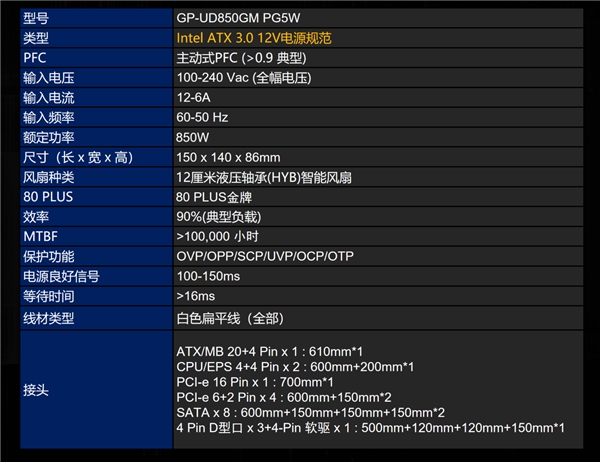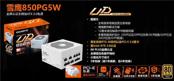海景房绝配,技嘉雪鹰850GP5W ATX 3.0纯白电源强势来袭