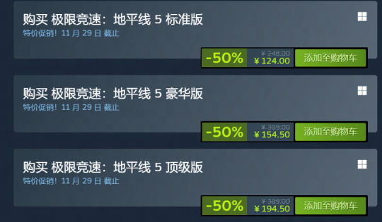 全部半价!《极限竞速:地平线5》各版本平史低50% OFF!